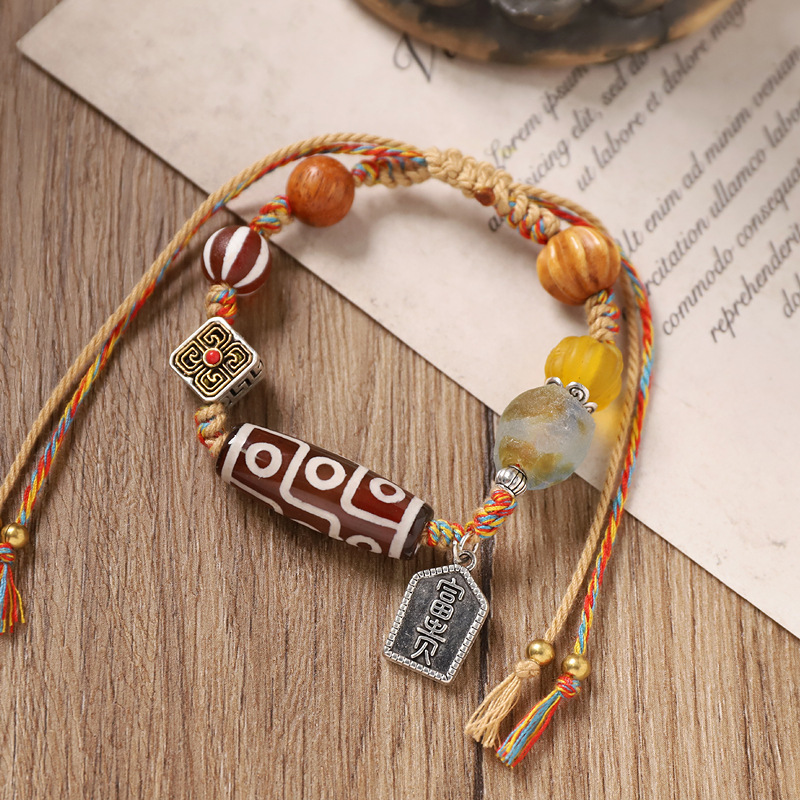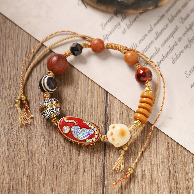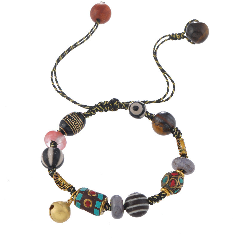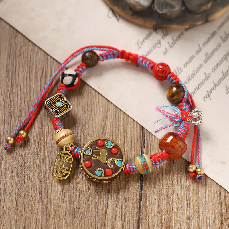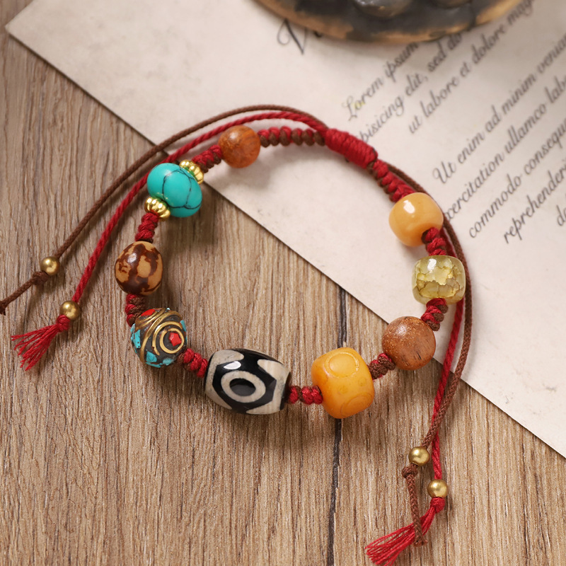七越民族风手工编织绳手链新中式尼泊尔手工铜珠手串松石异域手饰