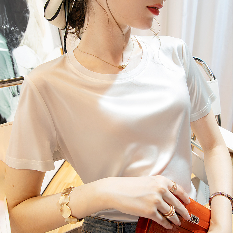 光泽感短袖T恤白色内搭洋气上衣丝滑欧货小衫女