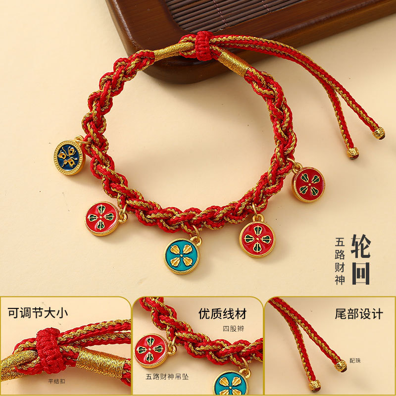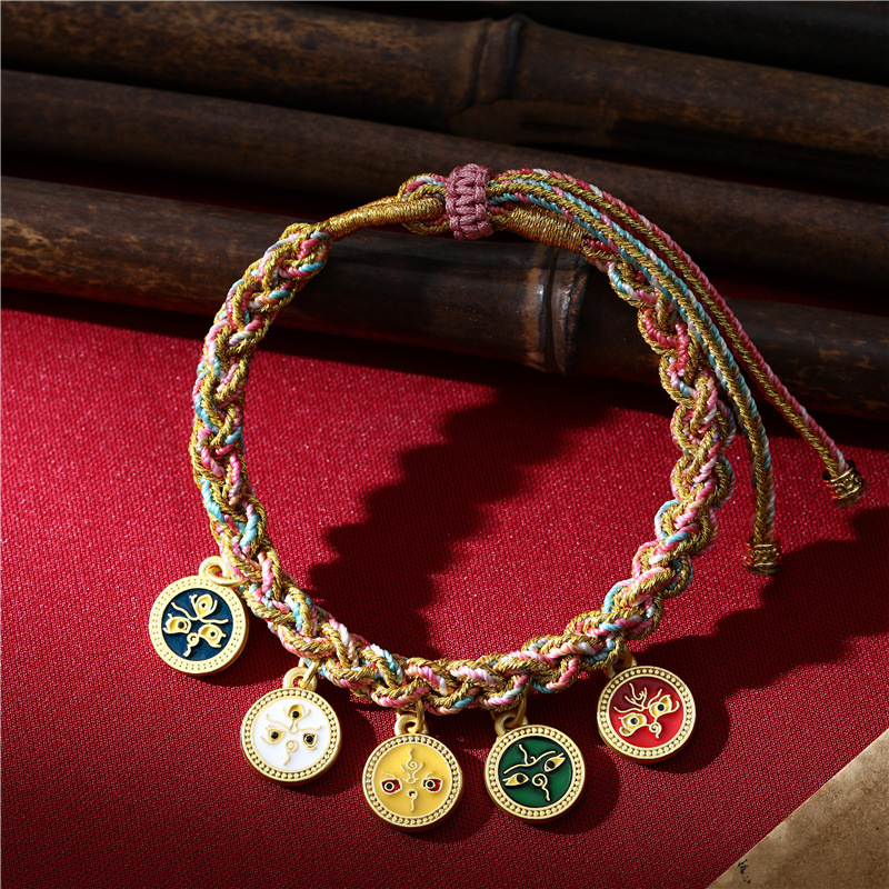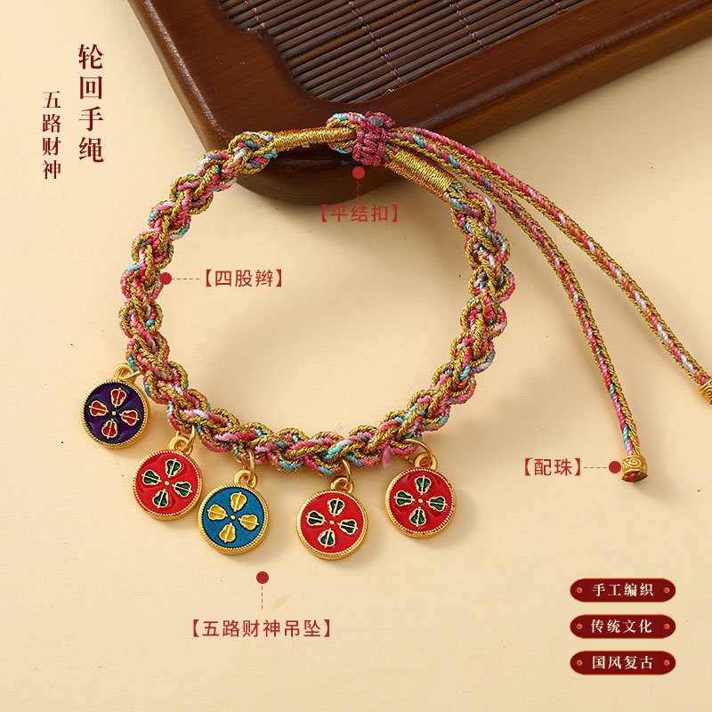 七越藏式手绳唐卡手工编织绳五路财神编绳手链男女本命年民族风