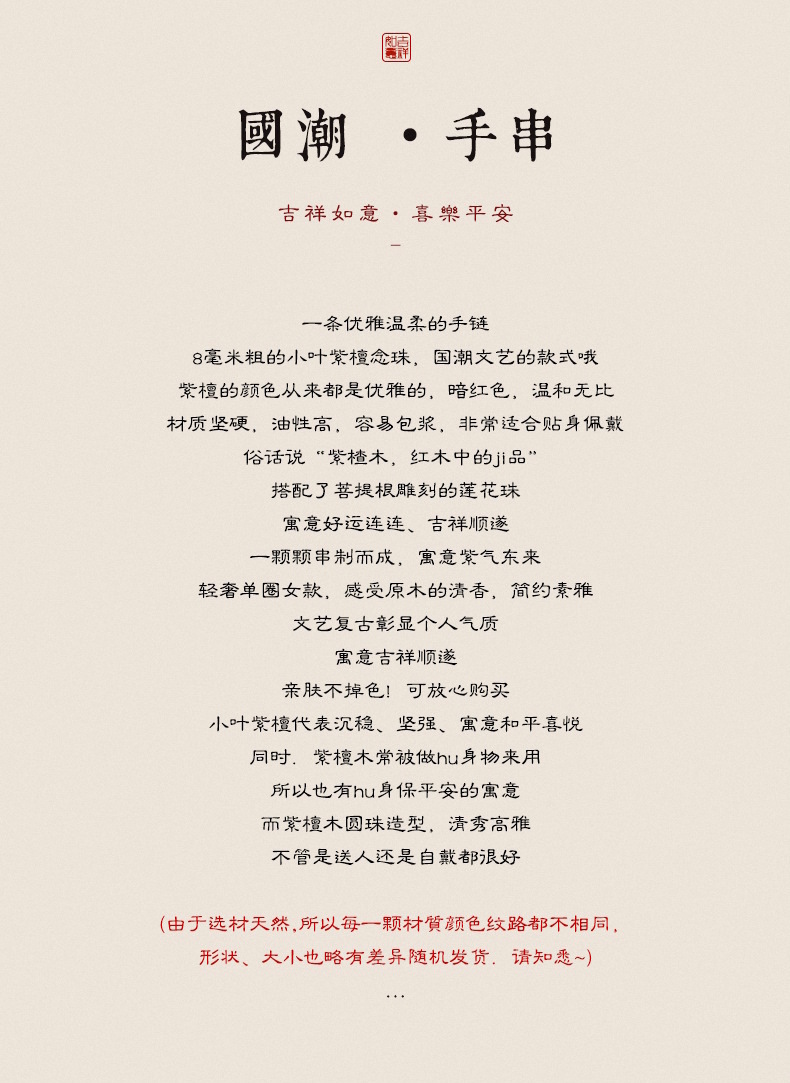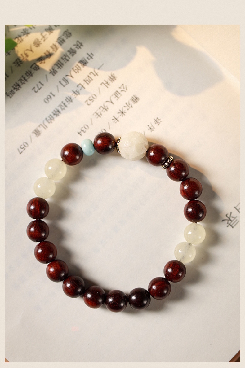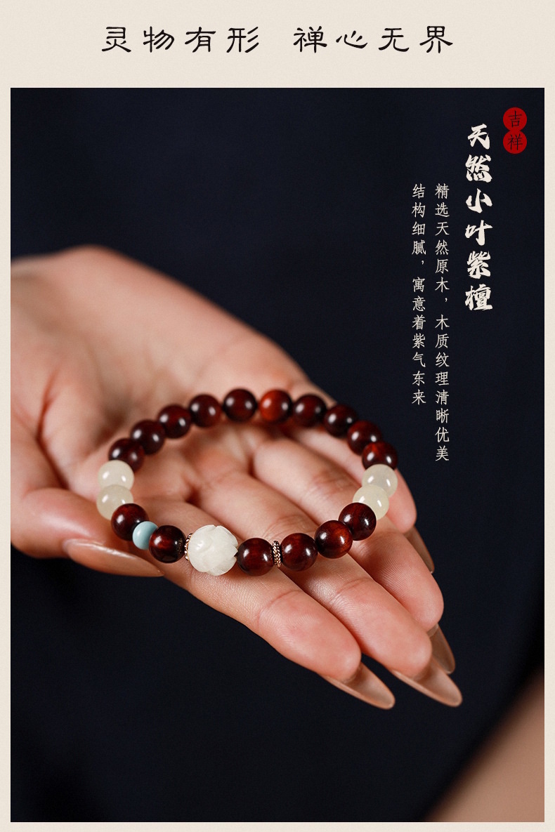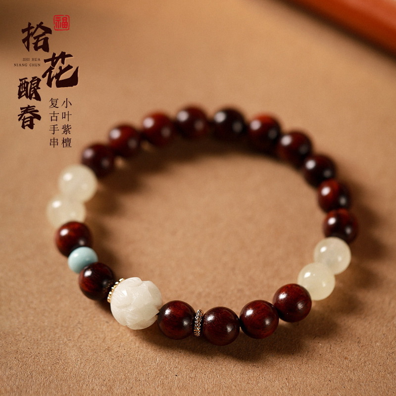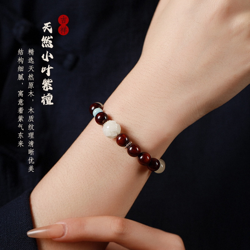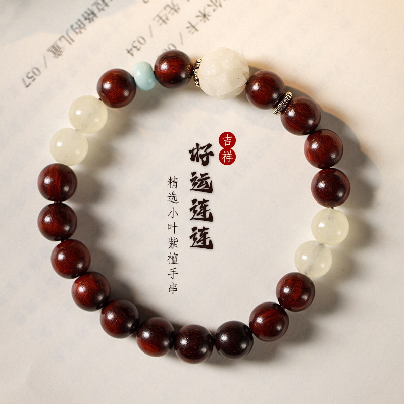 新中式复古轻国风小叶紫檀女文艺风佛珠手链菩提莲花转运珠木手串