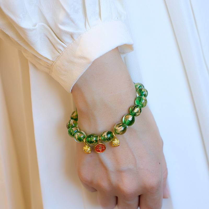 手工国风天然七彩香灰金箔琉璃吞金兽手串上上大吉琉璃手链
