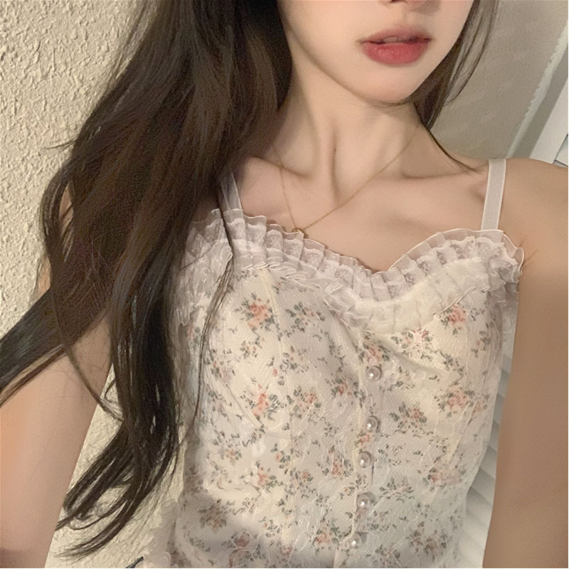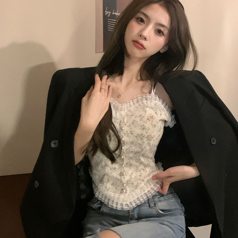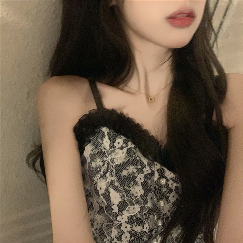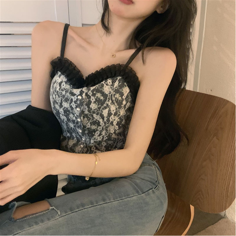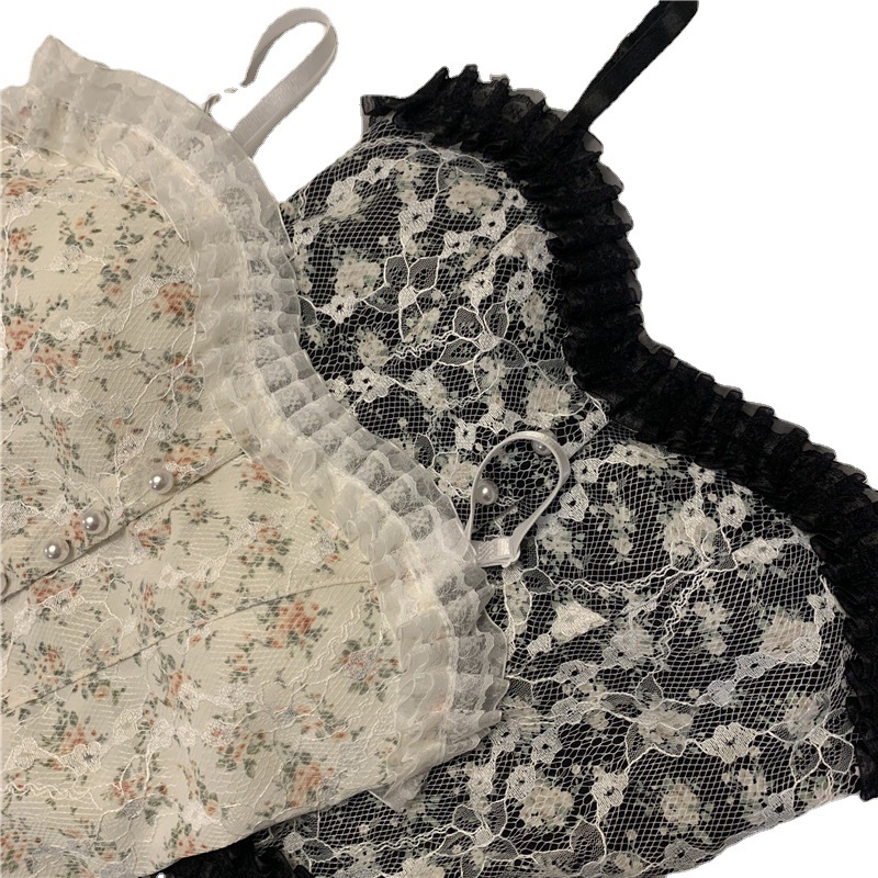 纯欲法式蕾丝碎花小吊带背心女冬性感内搭抹胸甜辣妹美背打底上衣