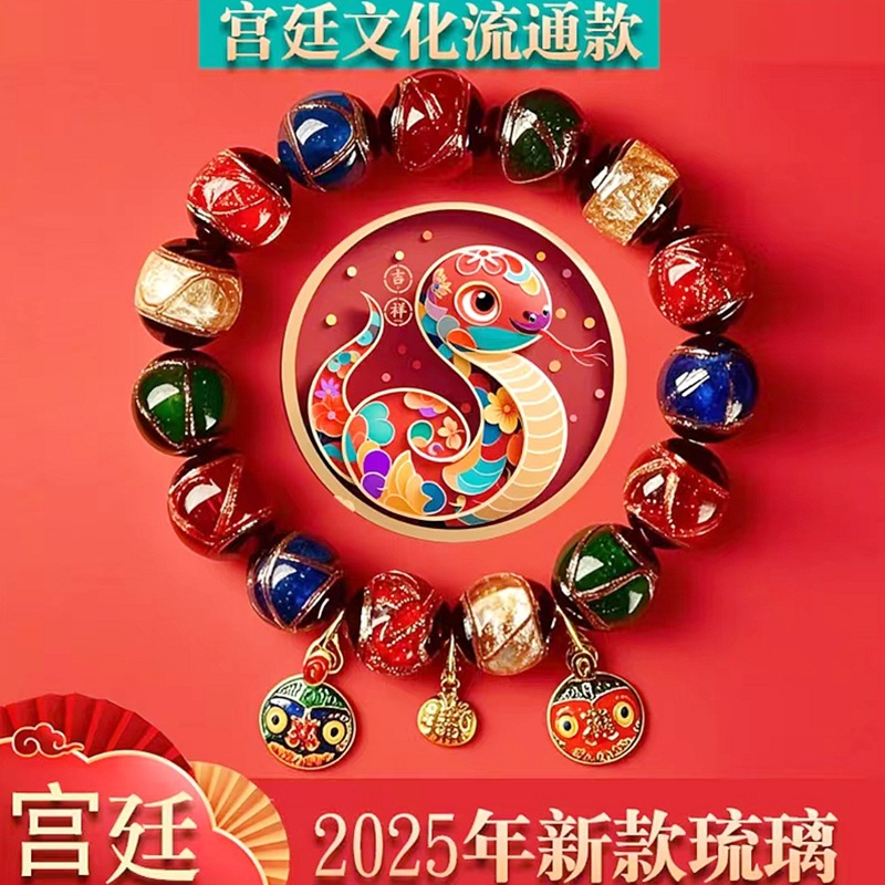 多宝五色香灰琉璃男女款手串吞金兽一家三口转运珠金箔潘家园手链