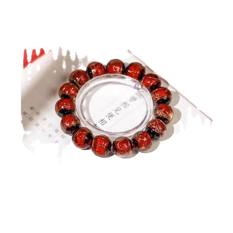 五色香灰瓷金箔琉璃手串棕白绿蓝红色转运珠潘家园手链男女款饰品