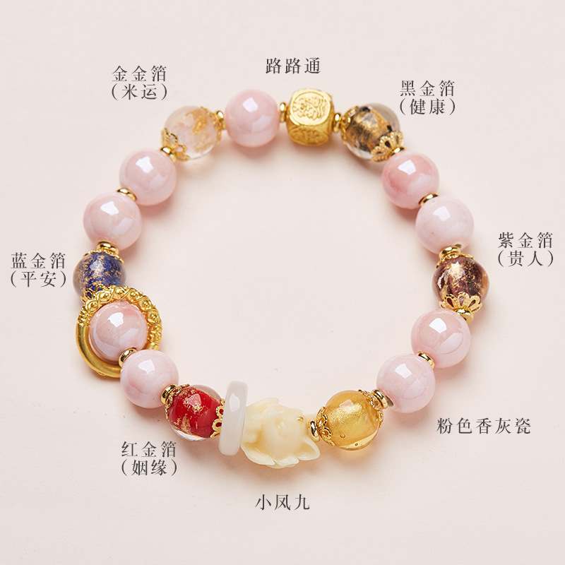 |材质|香灰琉璃,香灰瓷,象牙果小凤九,合金配饰,铜镀金配饰,玻璃配饰