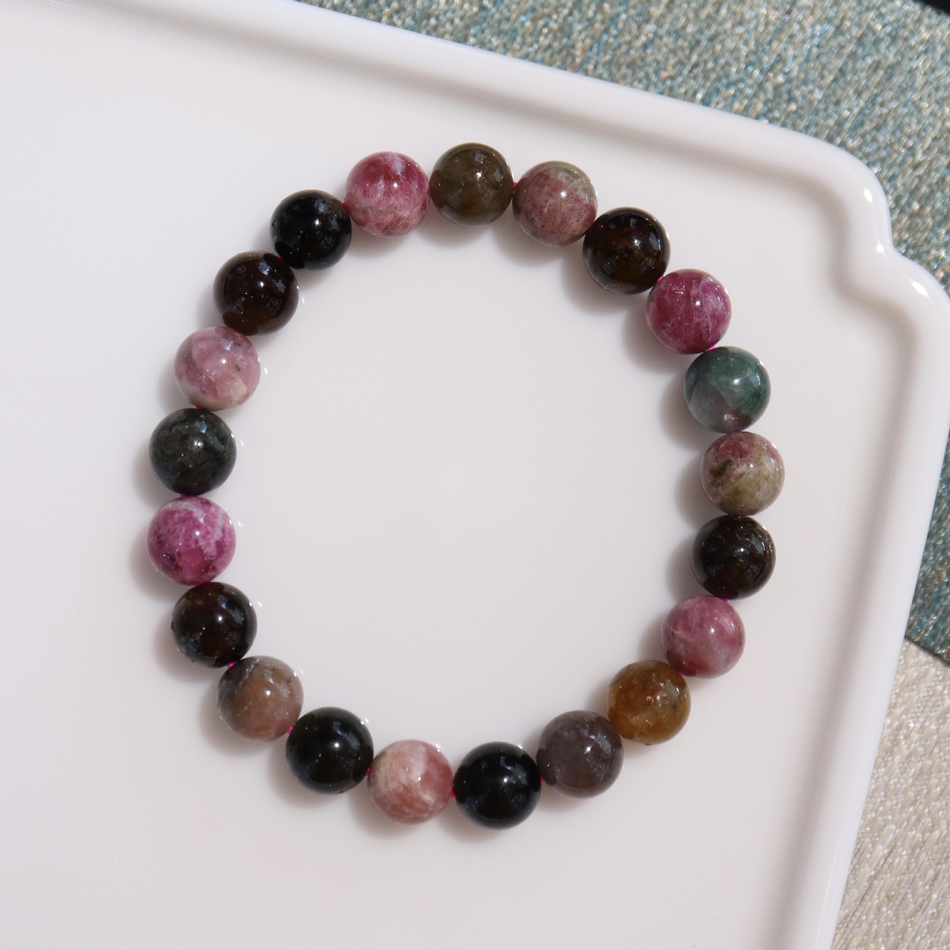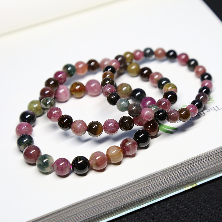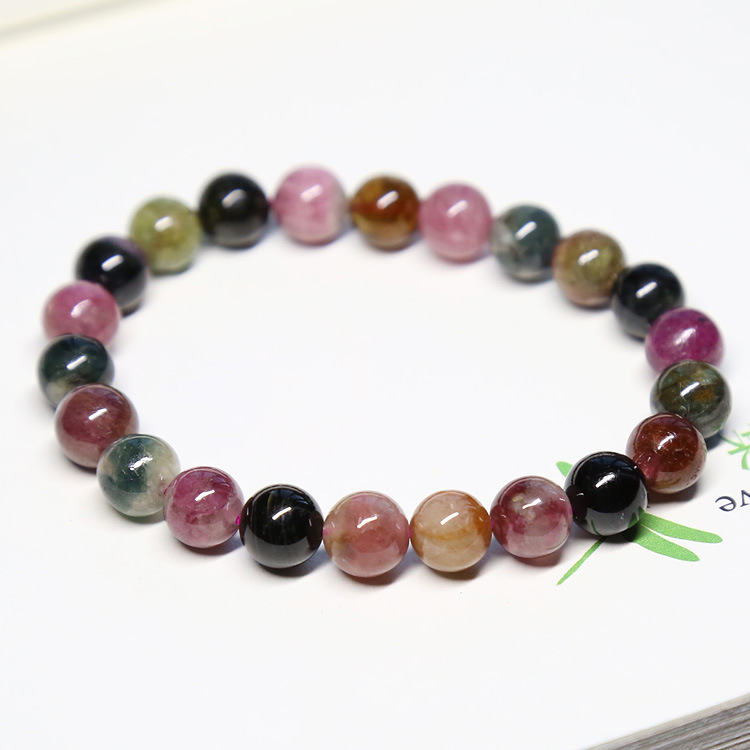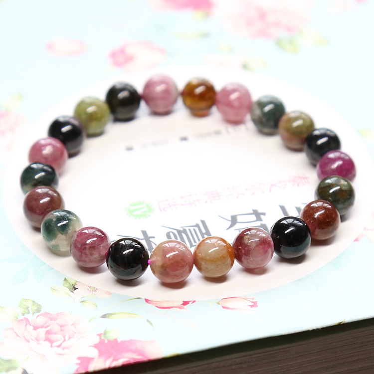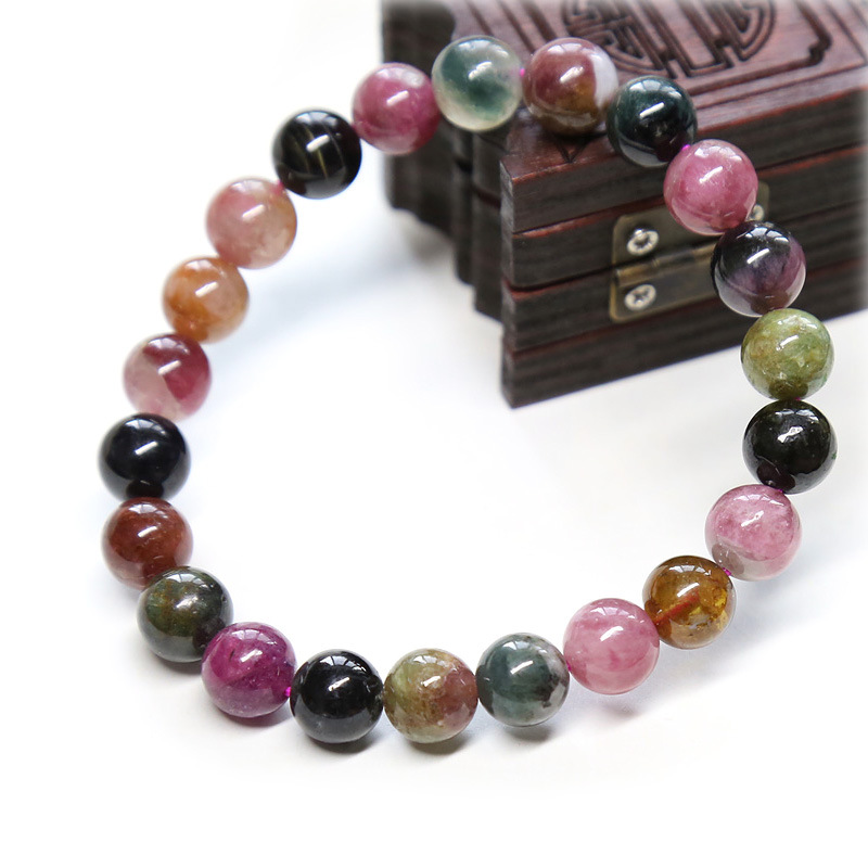 天然碧玺手链女 碧玺圆珠彩虹色单圈手串款水晶饰品圆珠闺蜜礼物