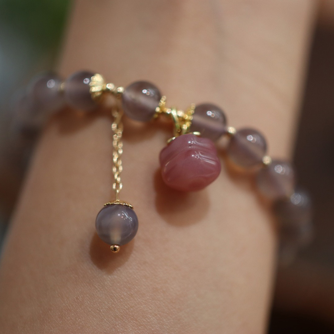 |材质|烟紫玛瑙,盐源柿子,铜镀金配饰