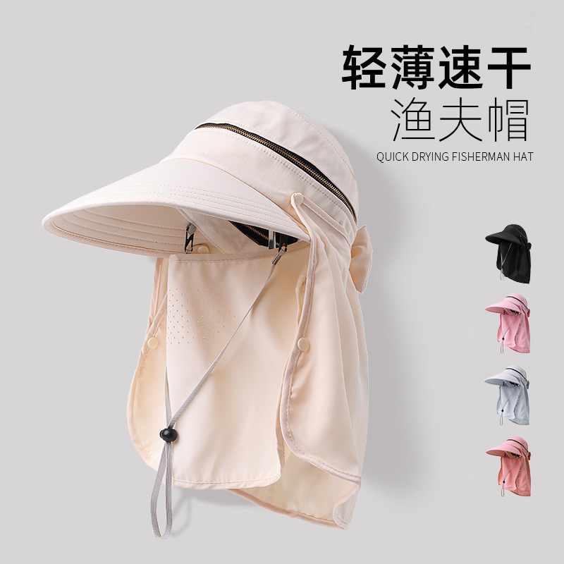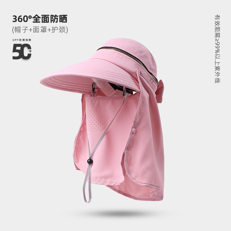 夏季防晒帽子女2025新款防紫外线户外骑行遮全脸可拆卸遮阳采茶帽