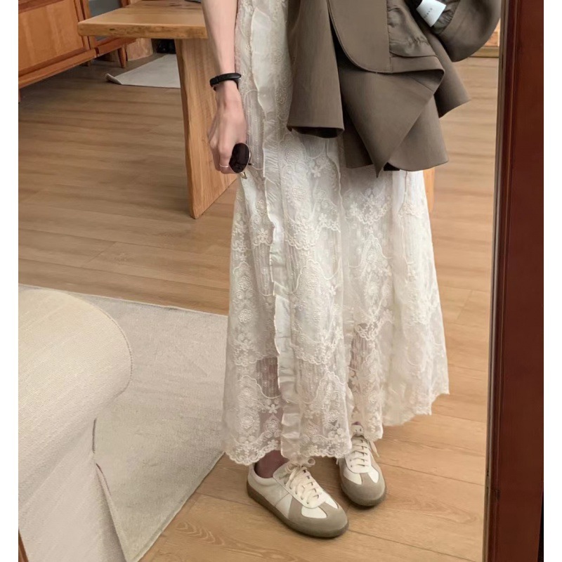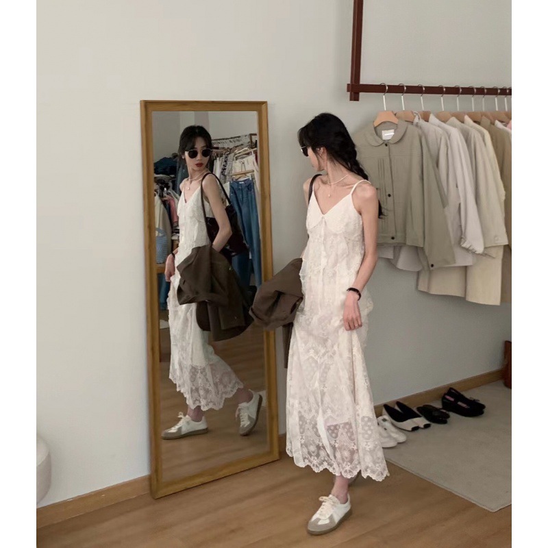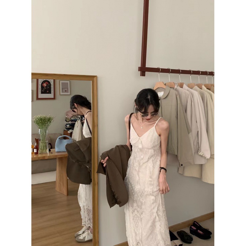 春装荷叶边蕾丝吊带连衣裙女夏季显瘦温柔气质度假裙搭配一套