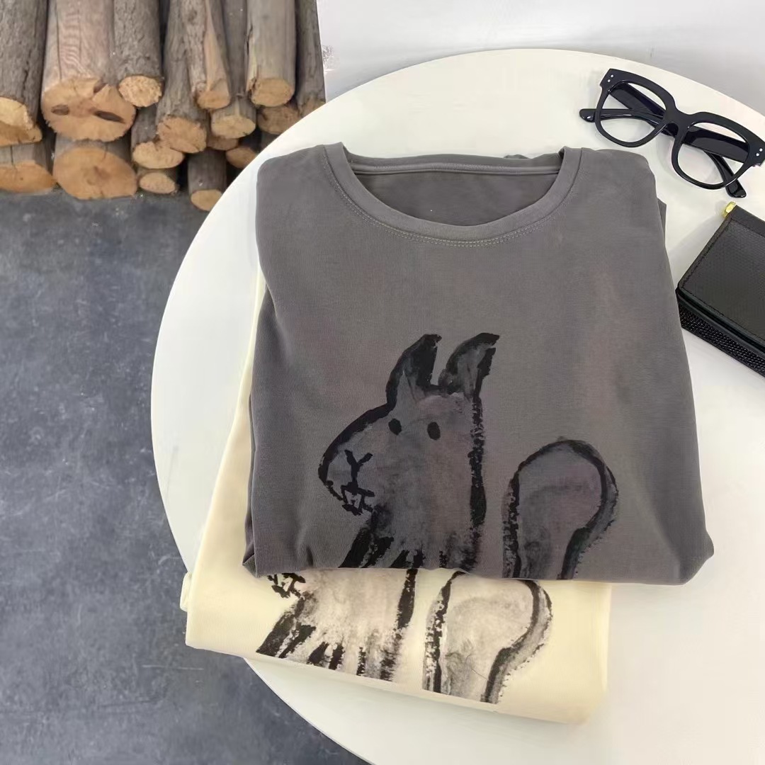 松鼠先生宽松大版情侣款学院风学生T恤磨毛加厚早春款纯棉打底衫