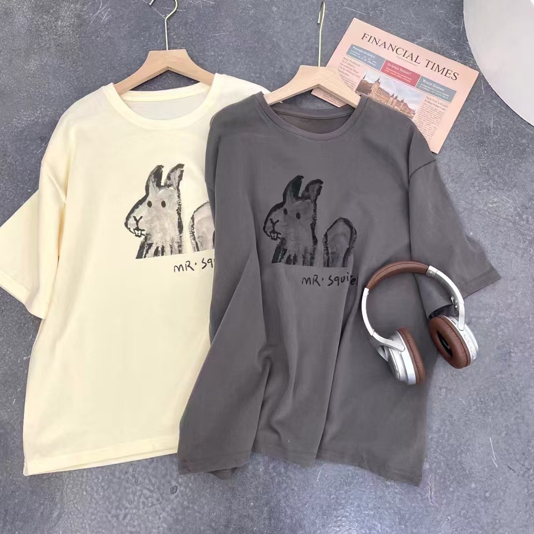 春装字母印花女半袖T恤新款韩版休闲宽松大码中长款纯棉上衣