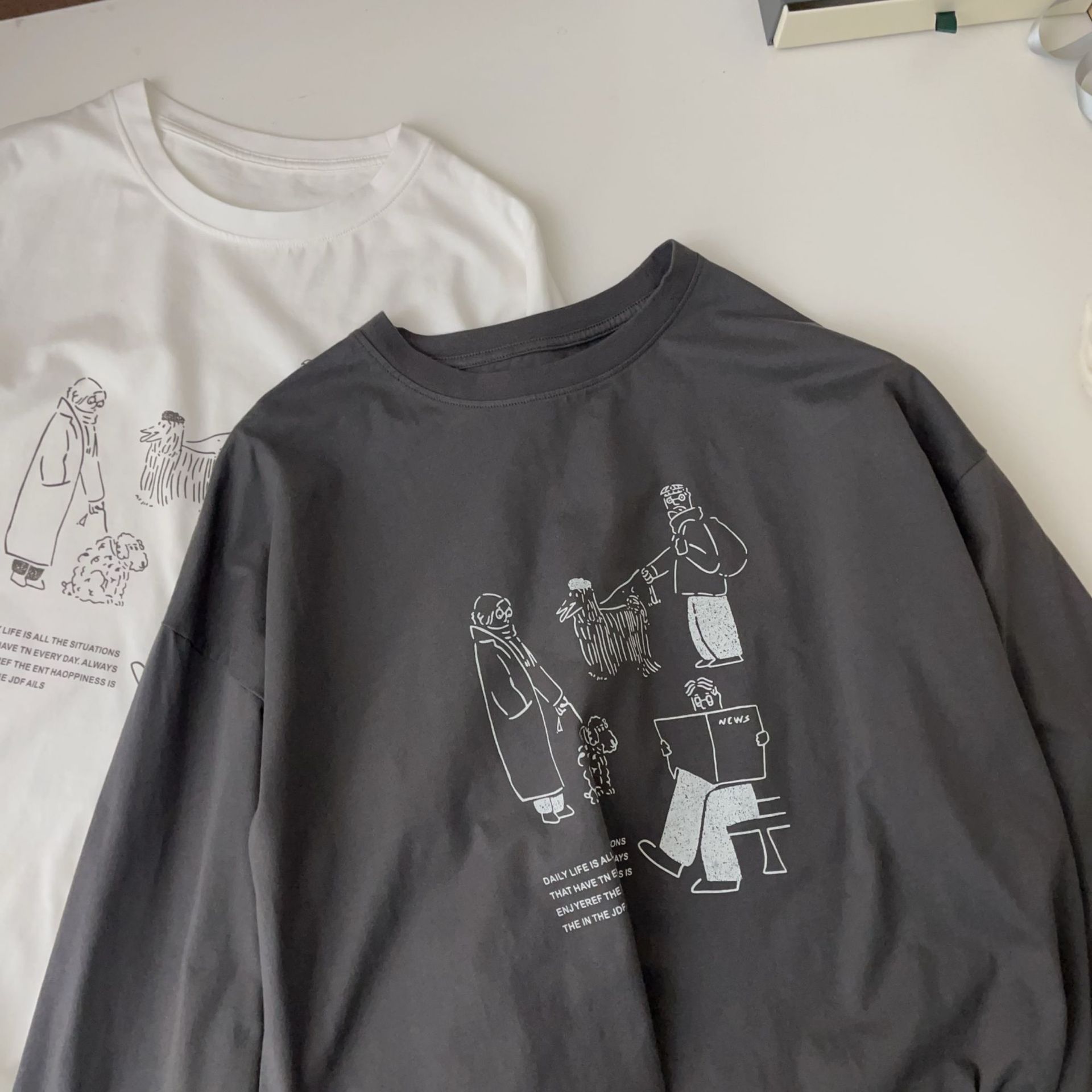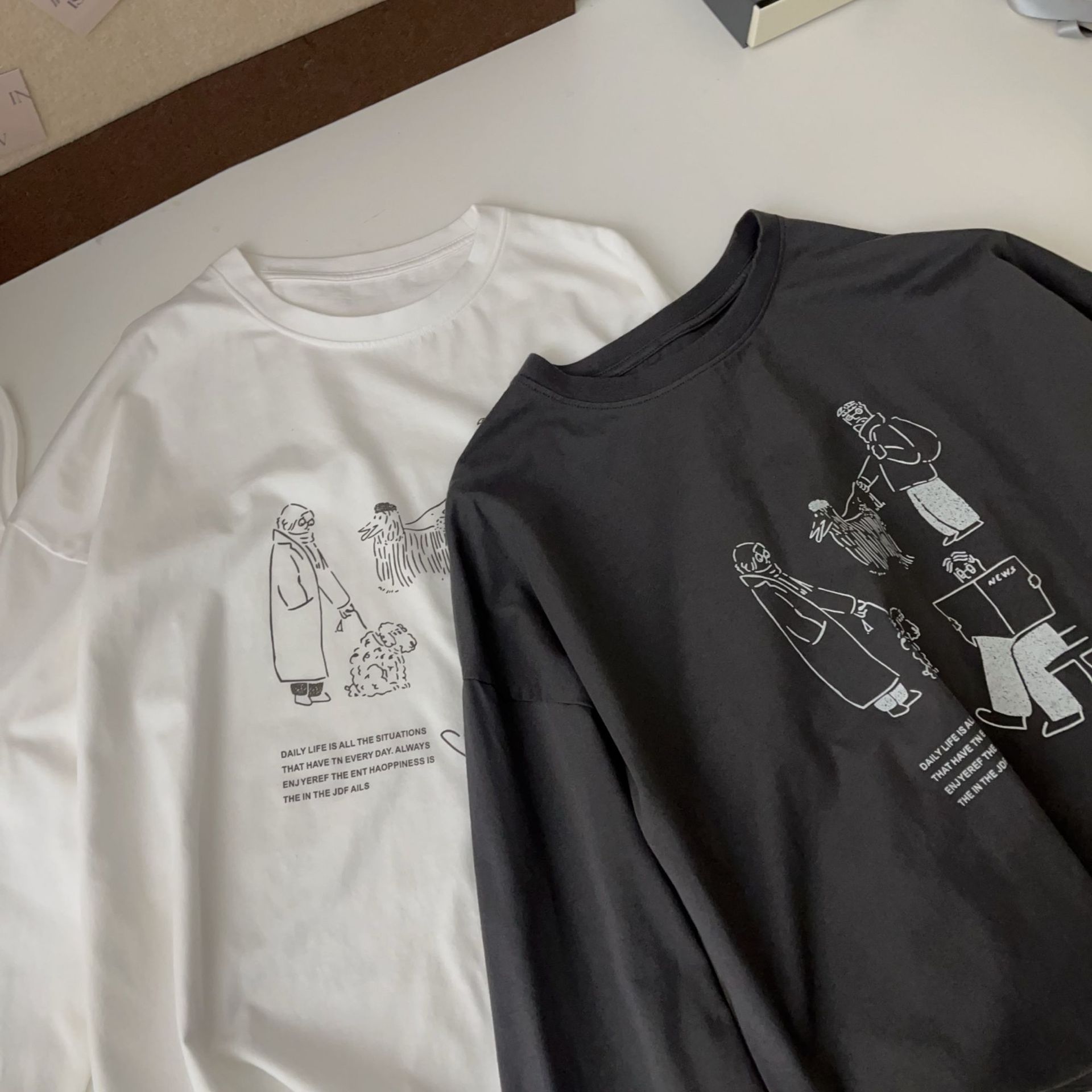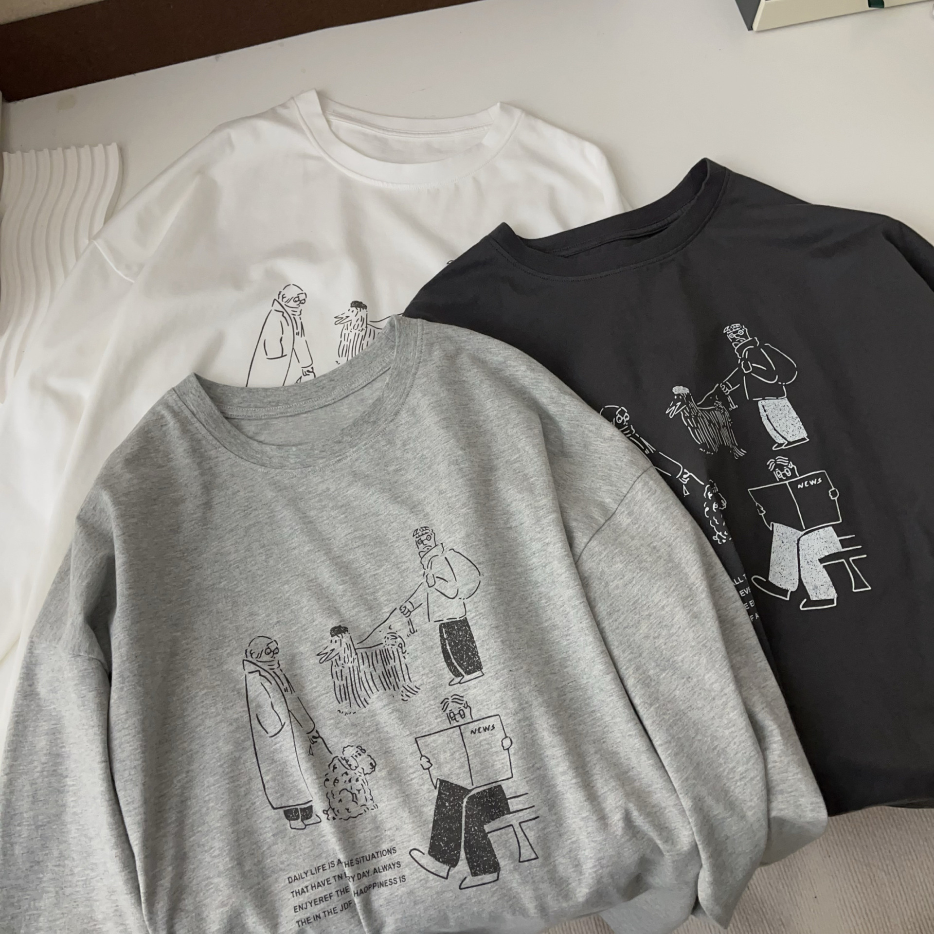 春装新品纯棉圆领新面料卡通印花长袖打底T恤宽松休闲上衣服