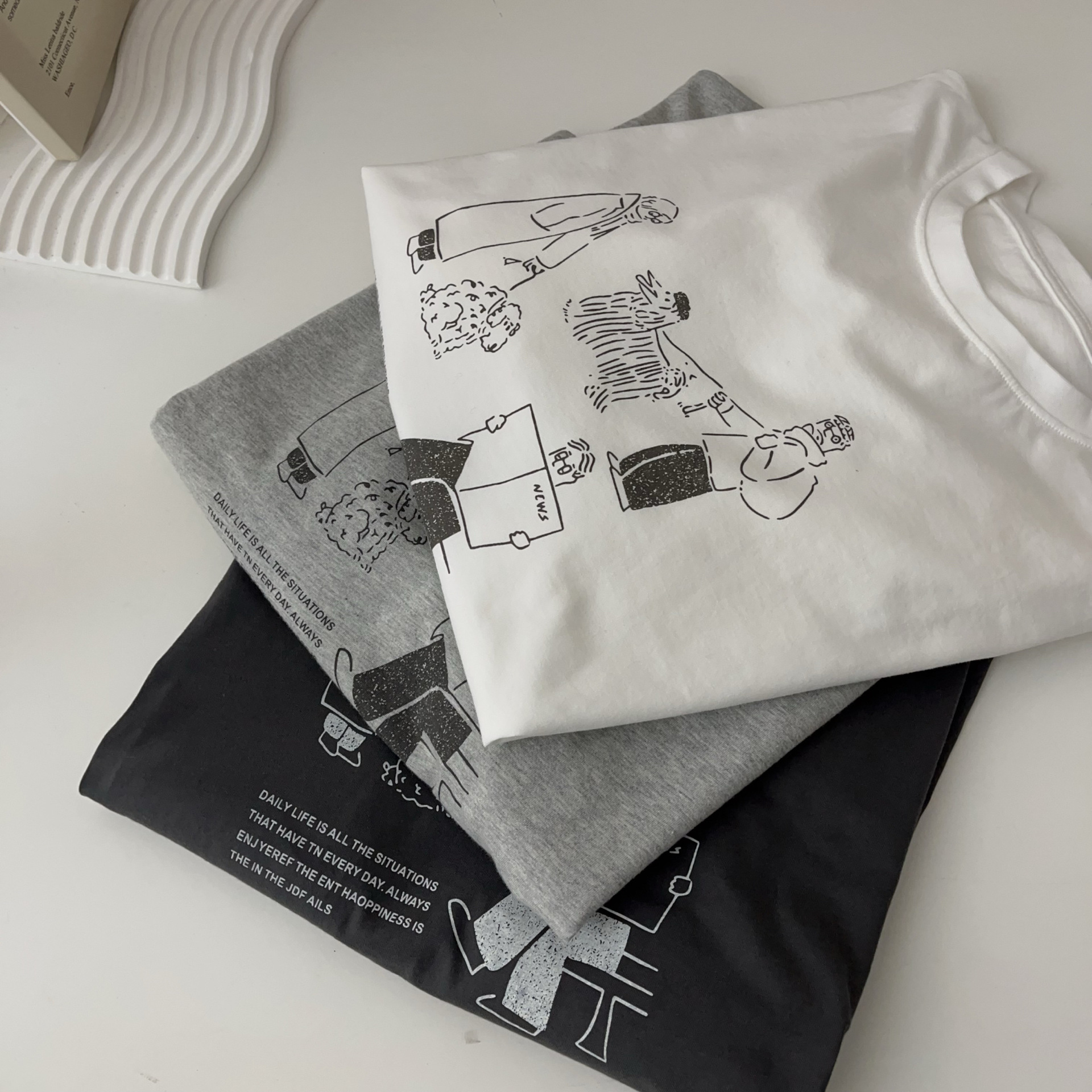 奥特莱斯~撤柜外贸绣花戴帽子小狗短袖T恤女百搭宽松显瘦减龄上衣