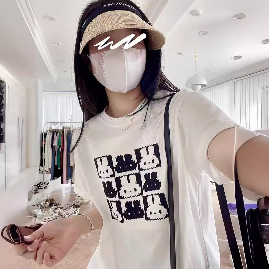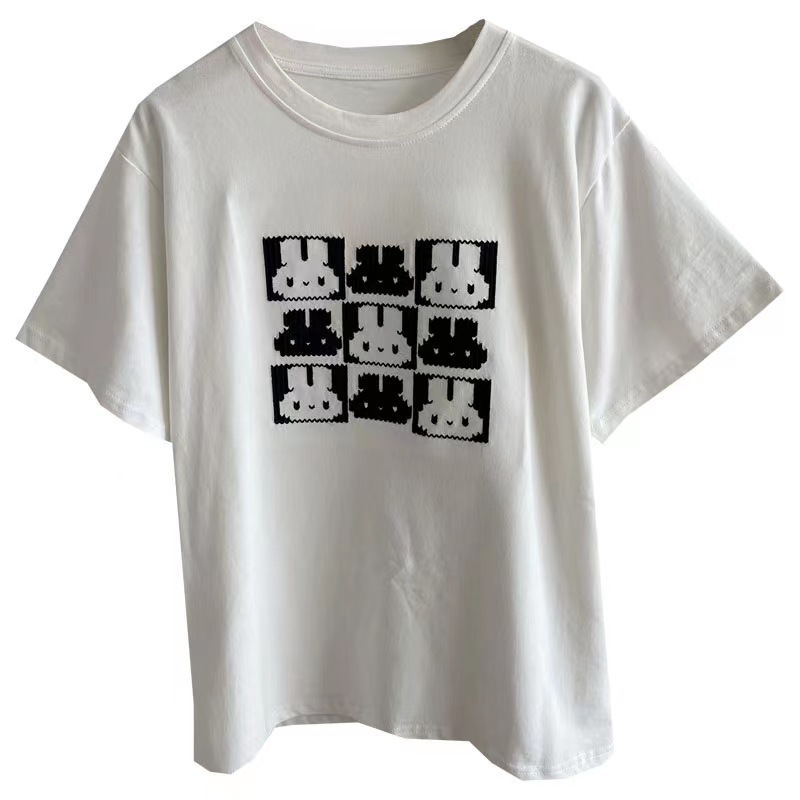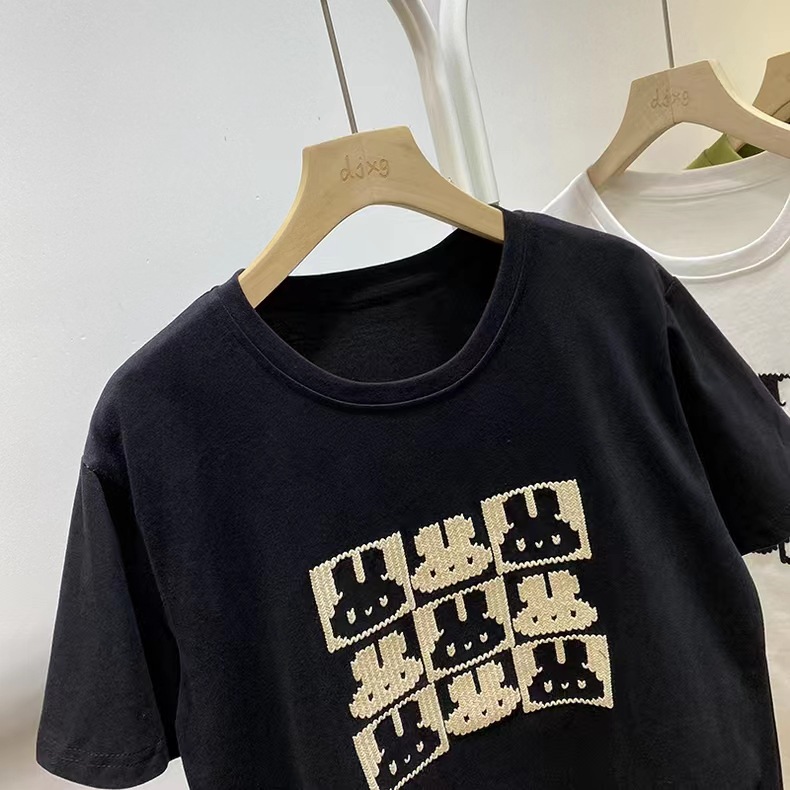 刺绣兔子纯棉短袖t恤女ins潮春夏装宽松打底衫大码设计感上衣