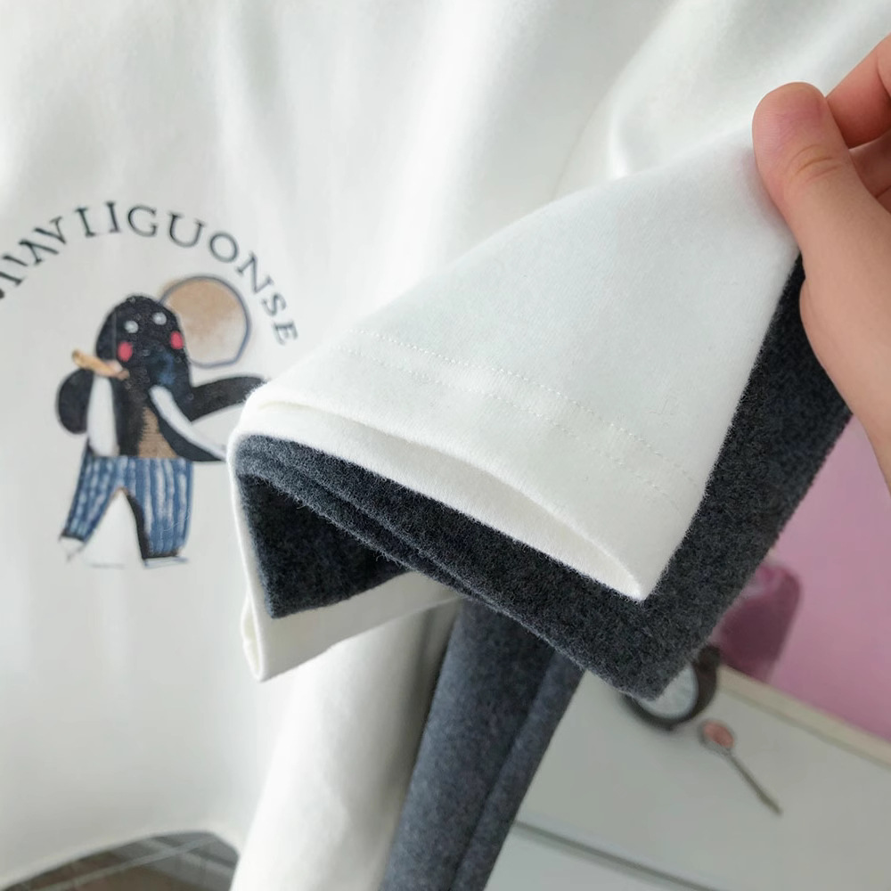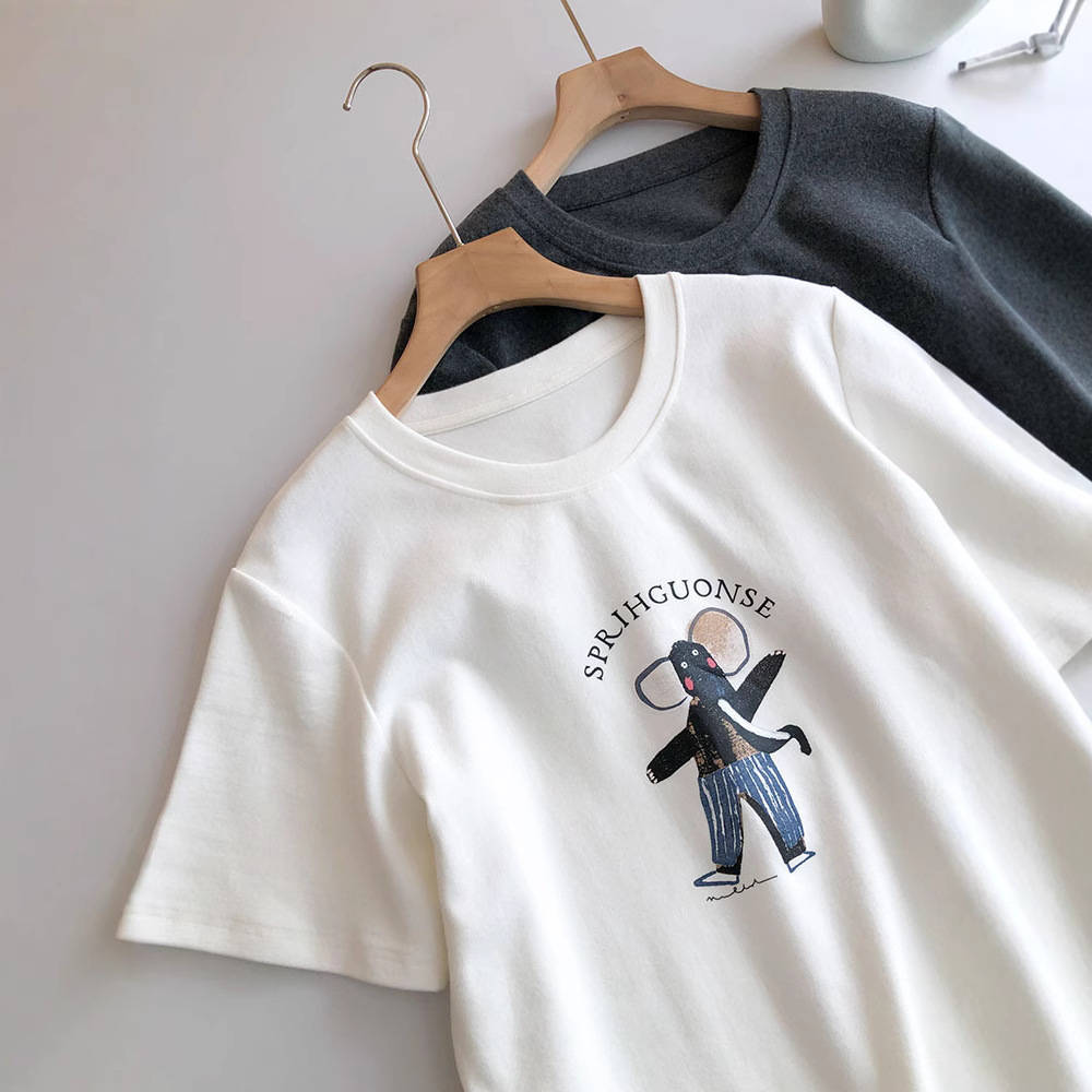 韩版洋气减龄卡通小熊印花圆领纯棉短袖T恤女宽松磨毛厚实上衣春