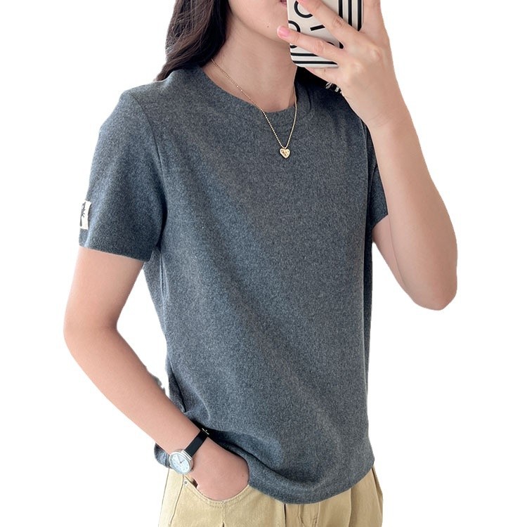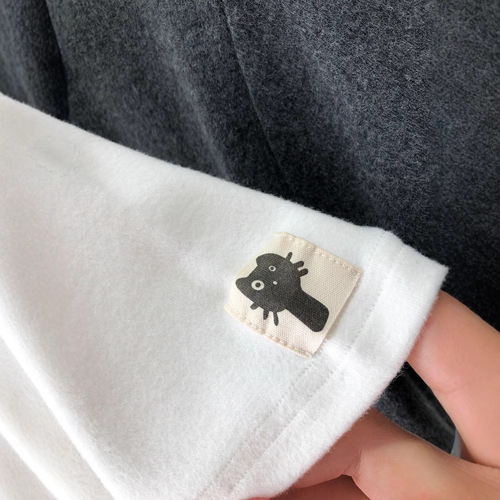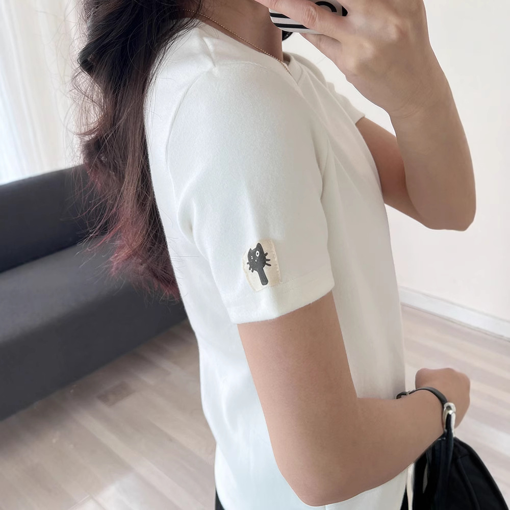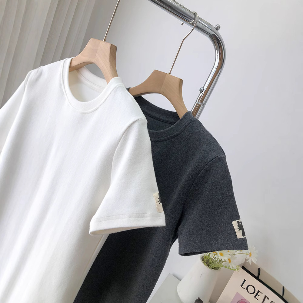 纯色圆领磨毛正肩猫咪贴布宽松基础百搭春秋内搭bi备短袖打底衫