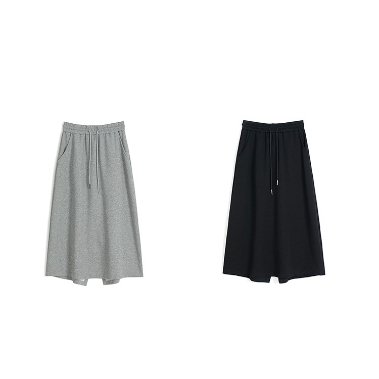 【后三角缺口开叉·口袋系带中长款卫裙】休闲运动风显瘦A字裙春