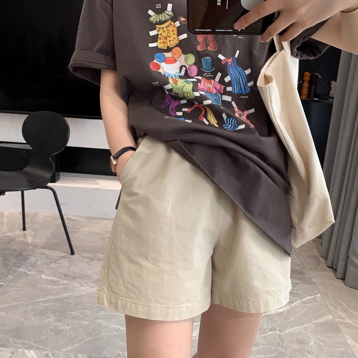 日系复古A字高腰工装短裤女水洗全棉休闲百搭显瘦阔腿裤夏款