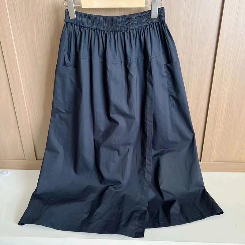 黑色半身裙女垂感裙子开叉中长春夏设计感高腰小个子a字过膝长裙