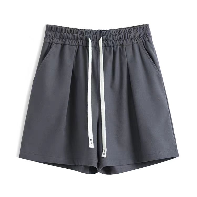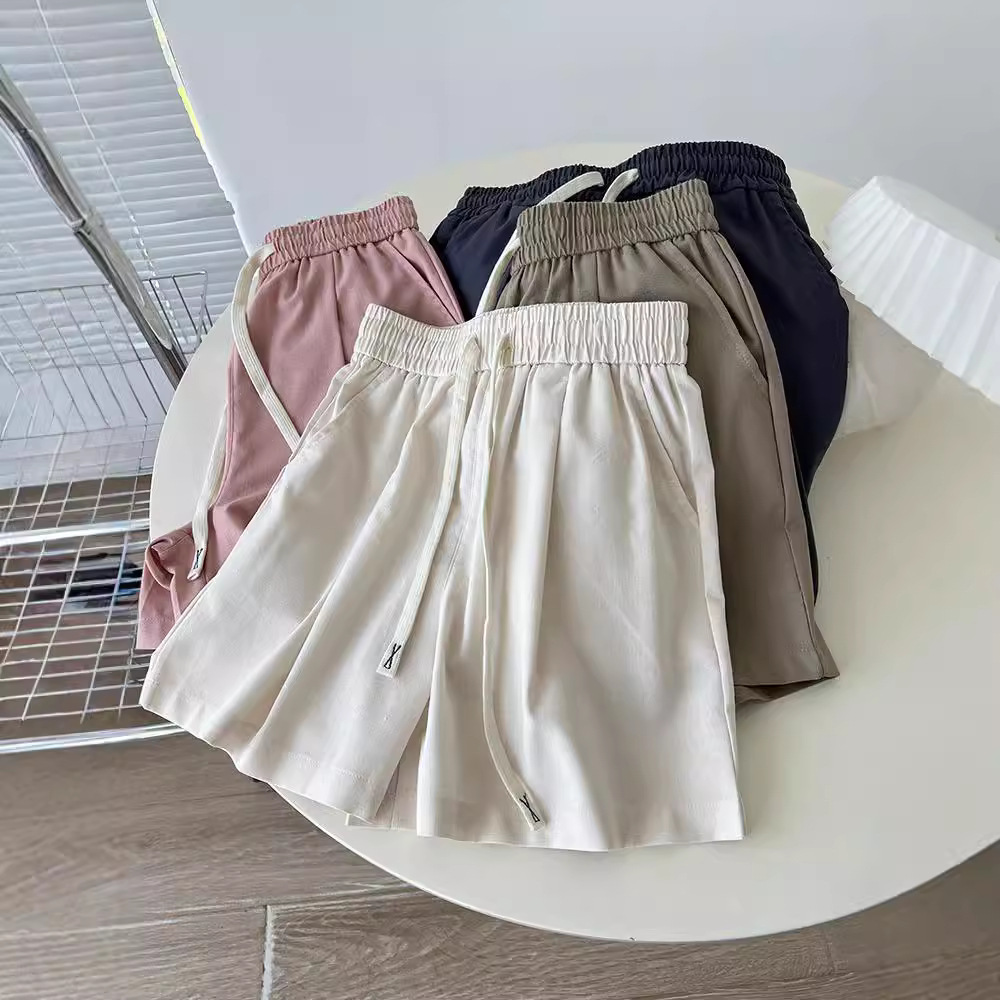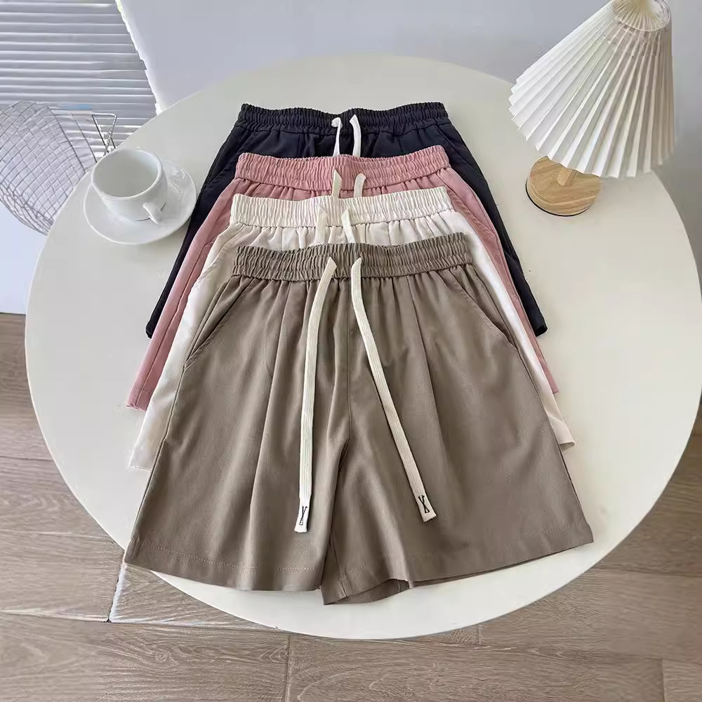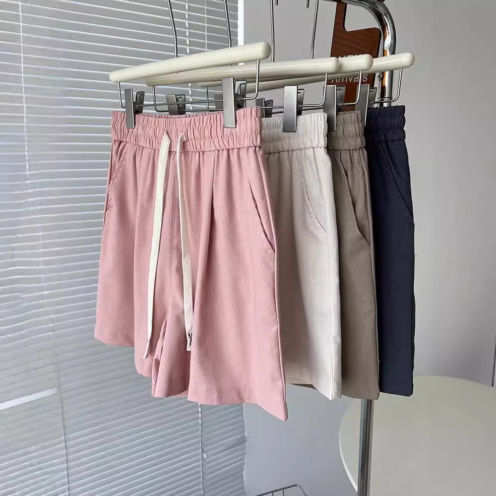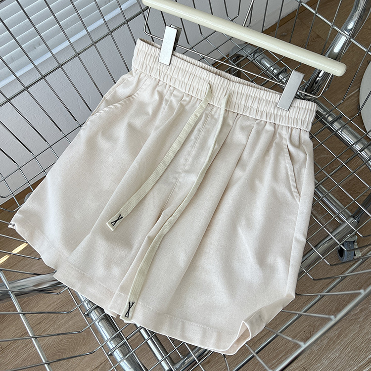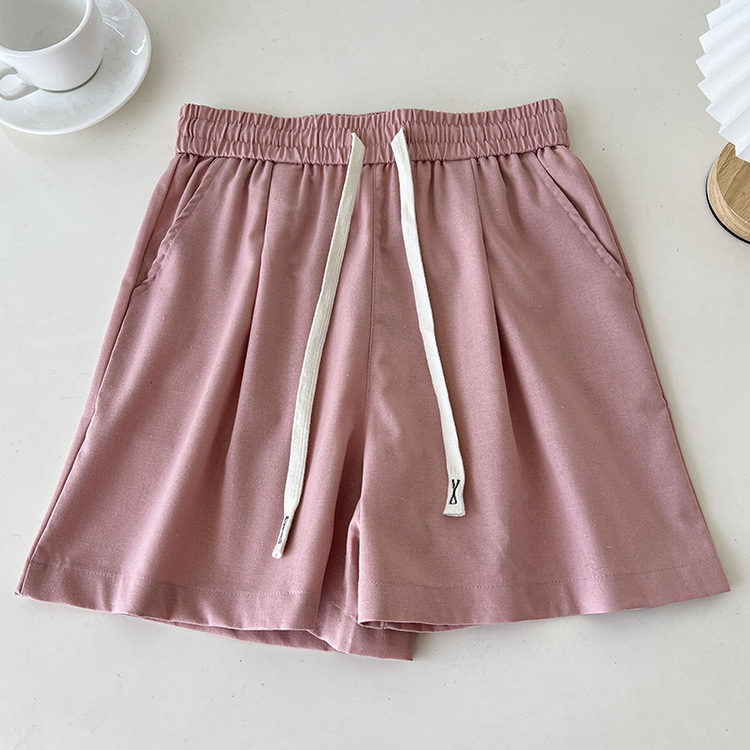 棉麻短裤女夏季松紧腰抽绳宽松透气阔腿运动裤纯色百搭居家热裤薄