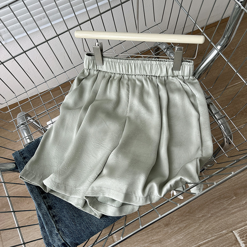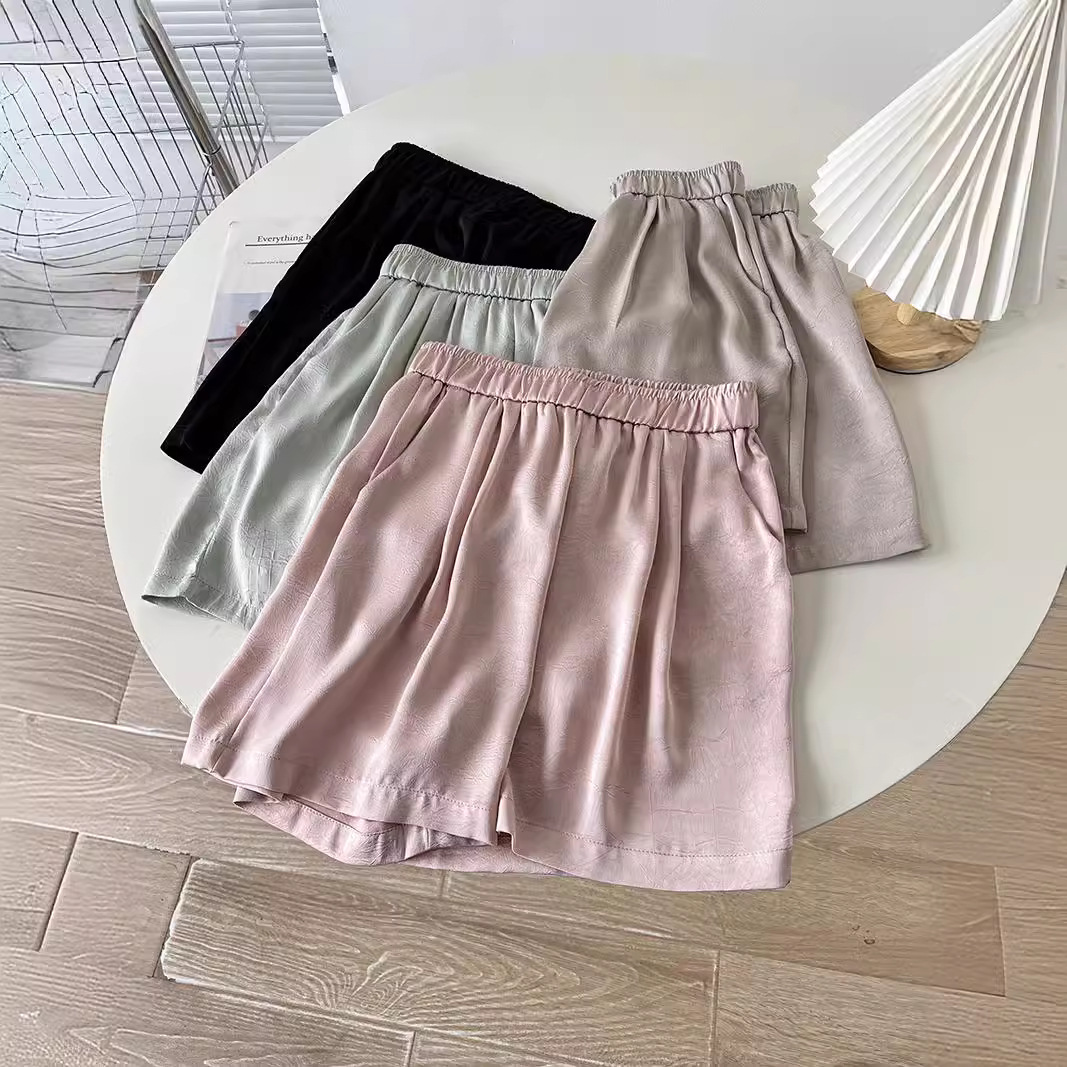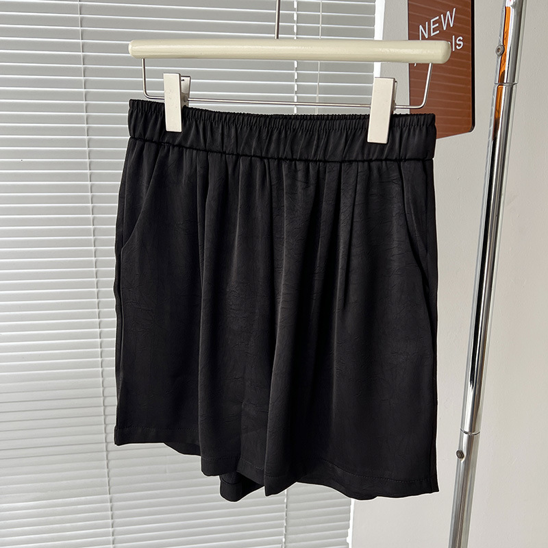丝滑压皱仿醋酸缎面短裤女夏季新款松紧腰宽松休闲阔腿裤居家睡裤
