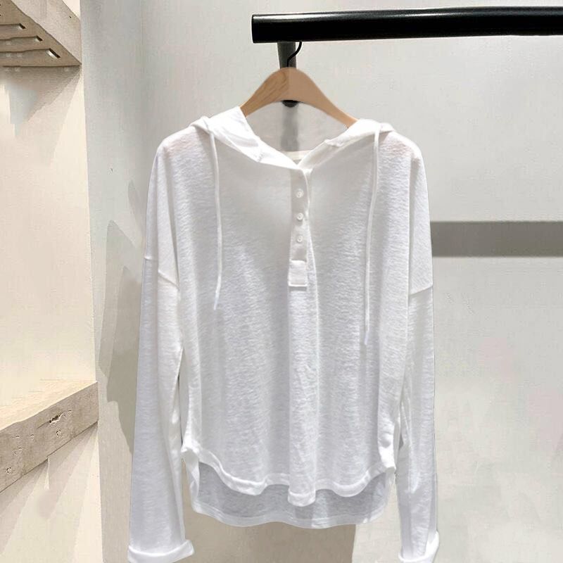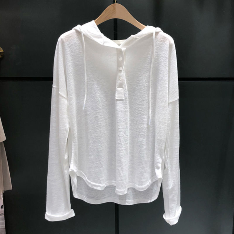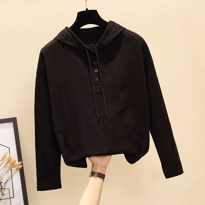 竹节棉连帽长袖T恤女春秋薄款卫衣韩版宽松大码打底衫女ins潮
