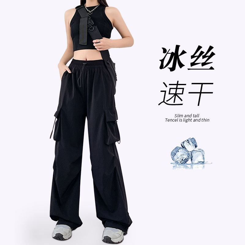 黑色工装裤子女2025新款冲锋裤小个子登山运动冰丝速干裤夏季薄款