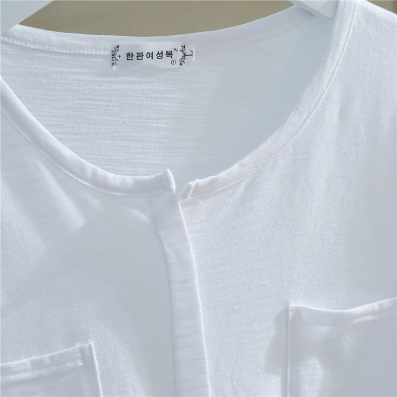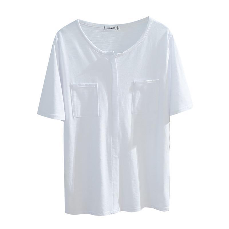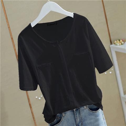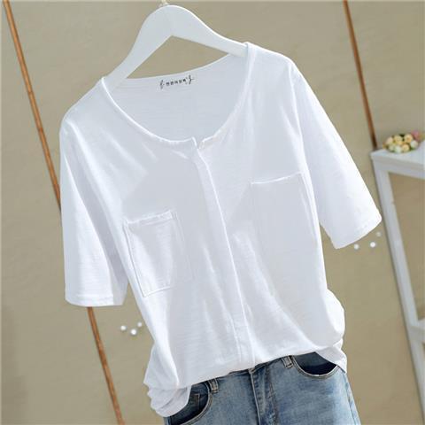 短袖T恤女夏季ins洋气竹节棉韩版棉v领宽松白色上衣打底衫女