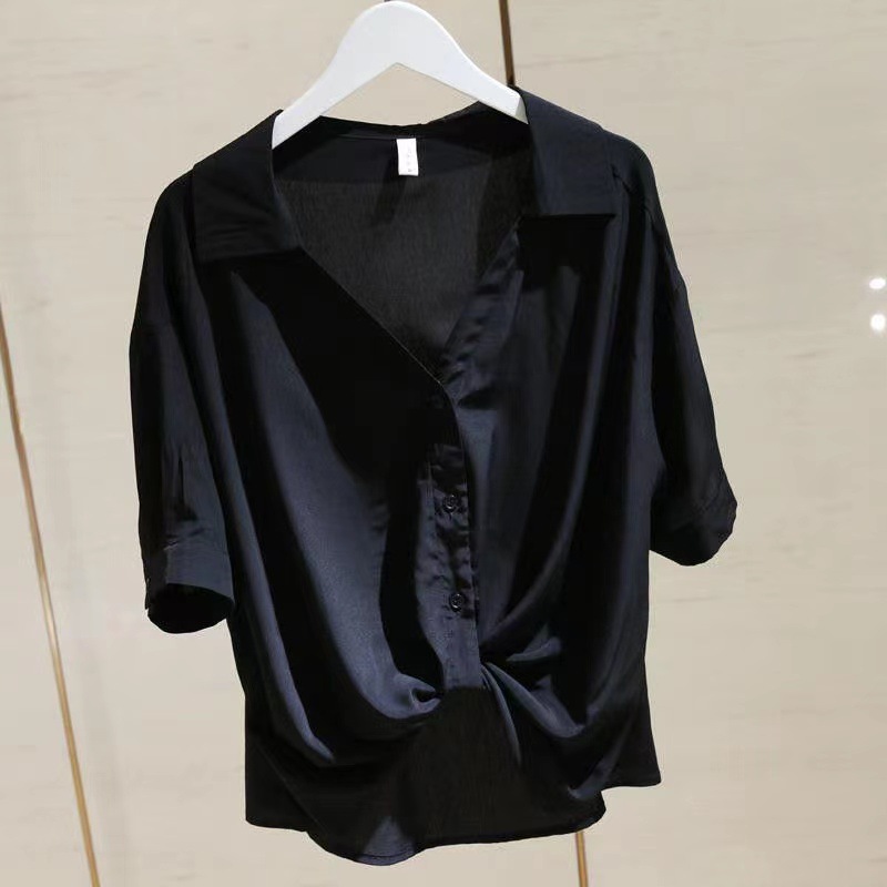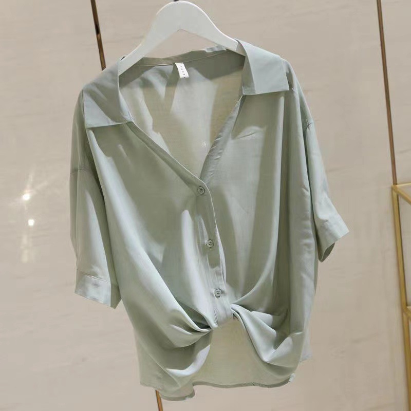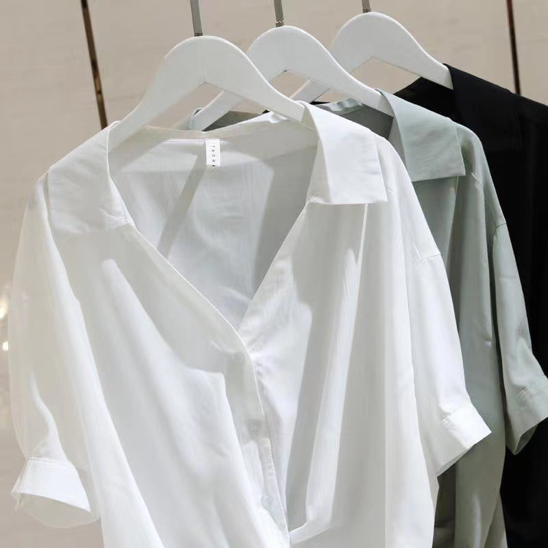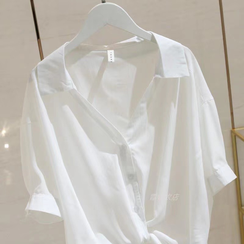 v领衬衫短袖女夏季新款韩版宽松显瘦百搭内搭雪纺薄款上衣潮