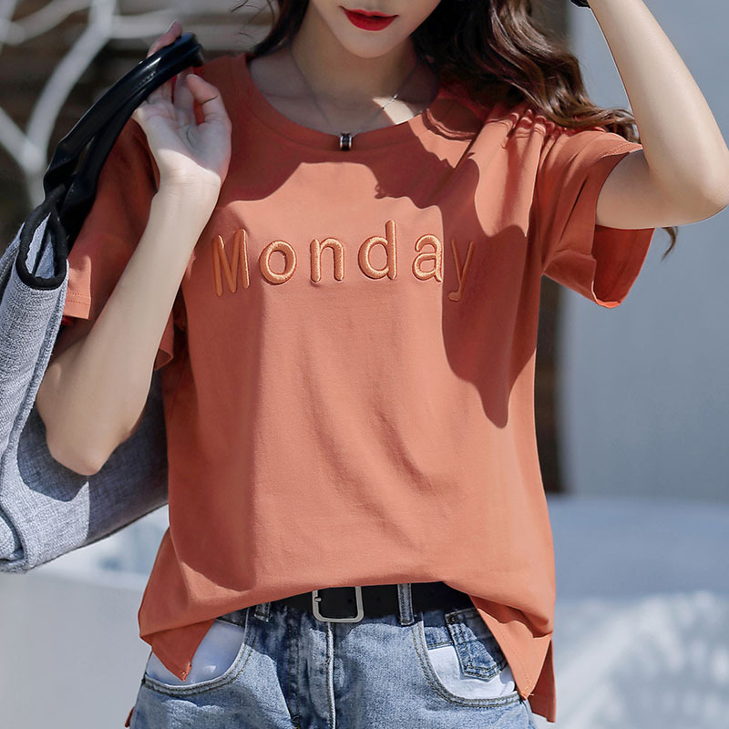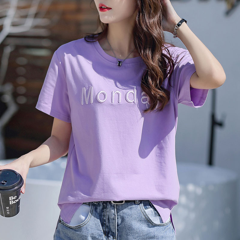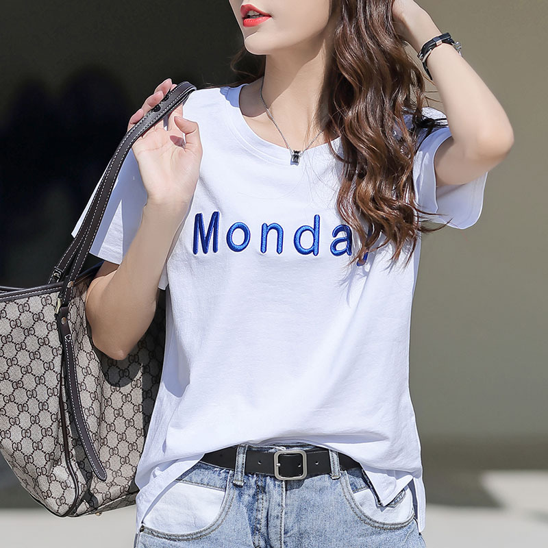 纯棉t恤女短袖宽松大码夏季年新款字母刺绣半袖体桖上衣服潮
