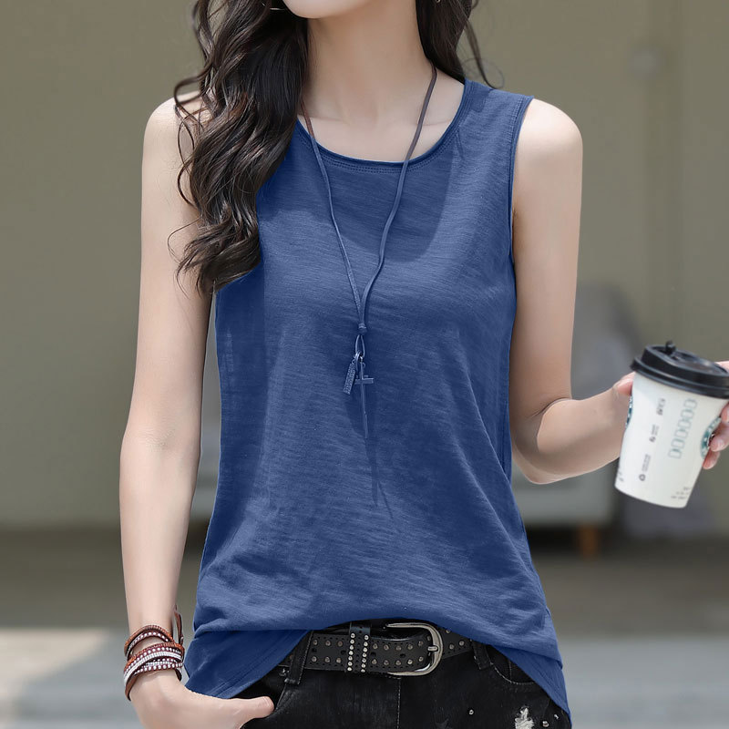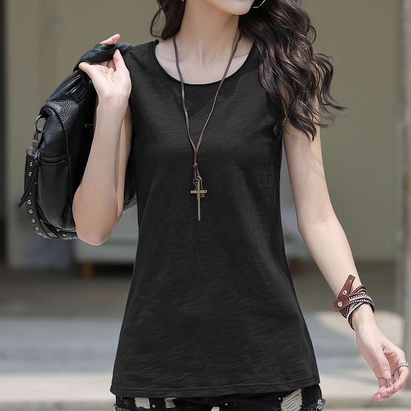 竹节棉无袖T恤女背心外穿年新款夏装纯棉打底衫百搭宽松上衣