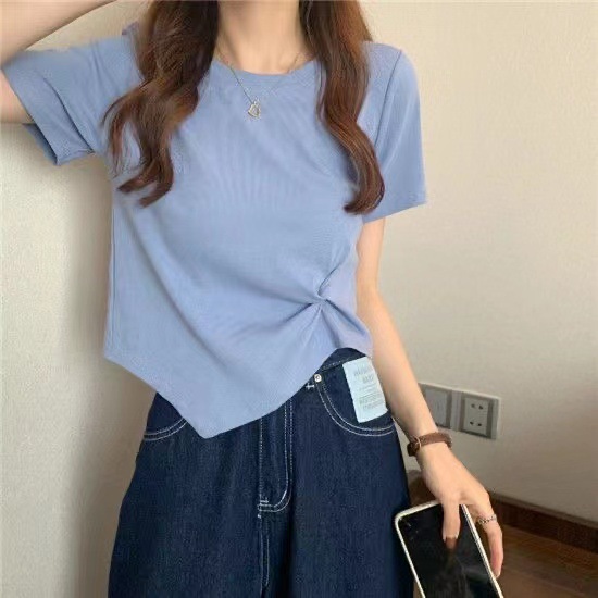 夏季新款不规则设计感白色短袖T恤女夏小众褶皱短款上衣ins潮