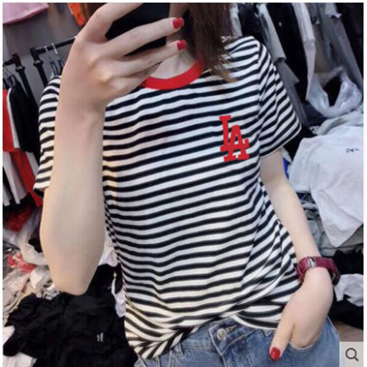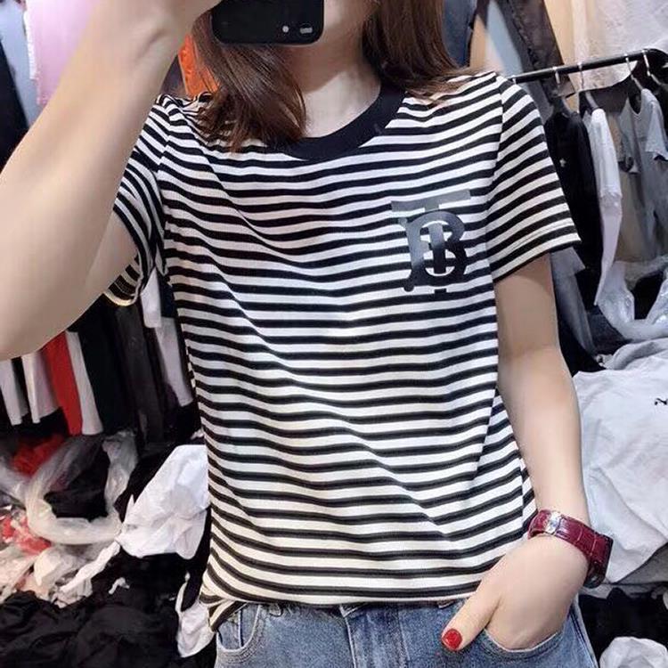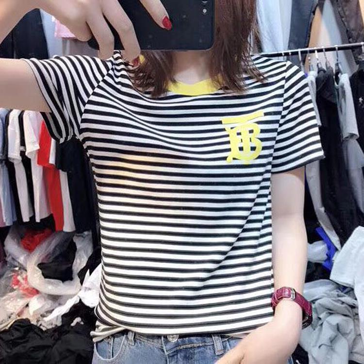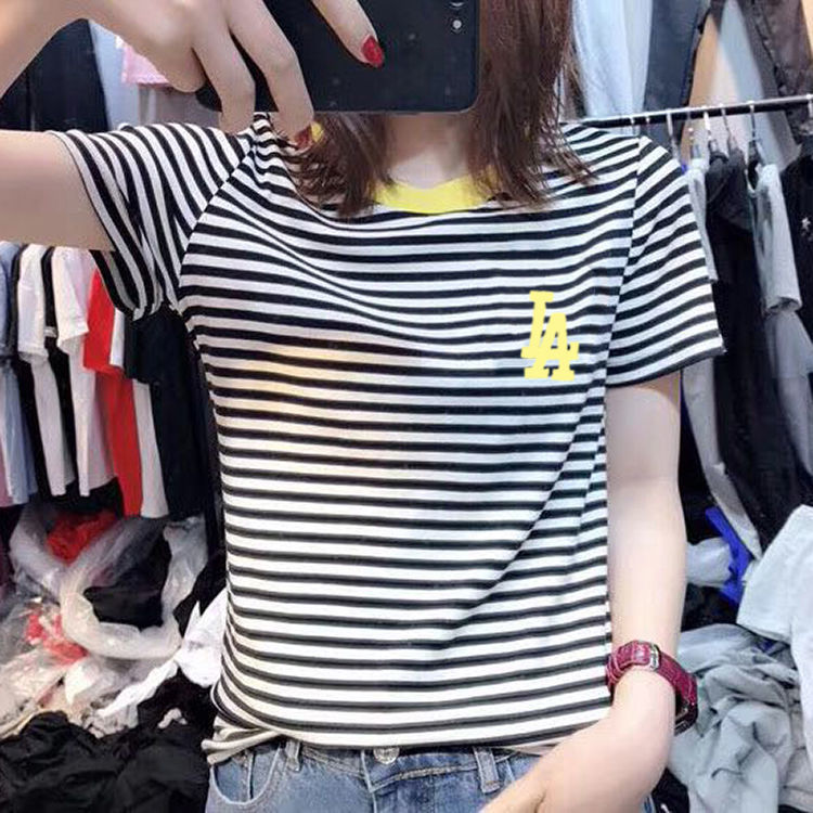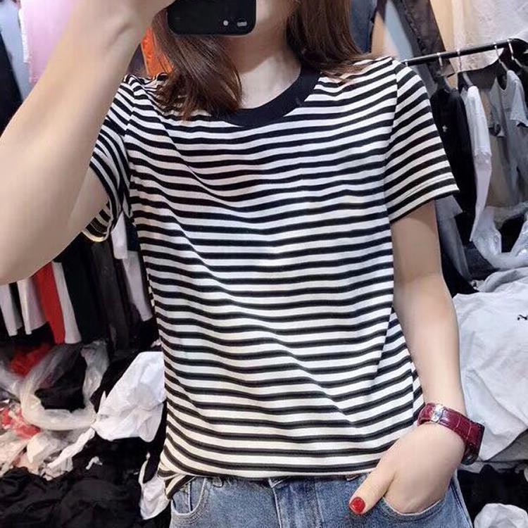 纯棉条纹T恤女装短袖欧洲站夏装半袖洋气宽松时尚体恤潮