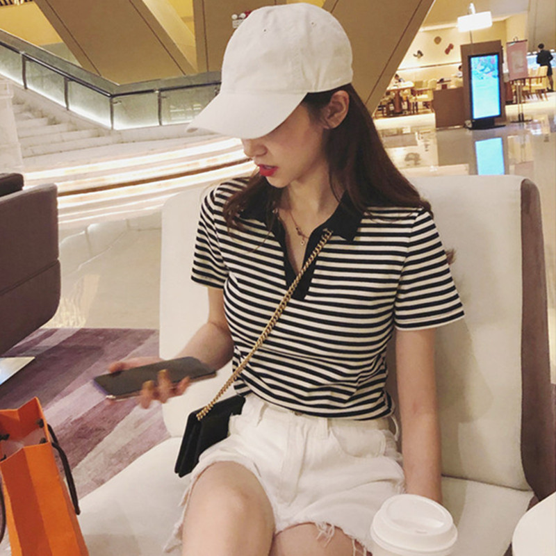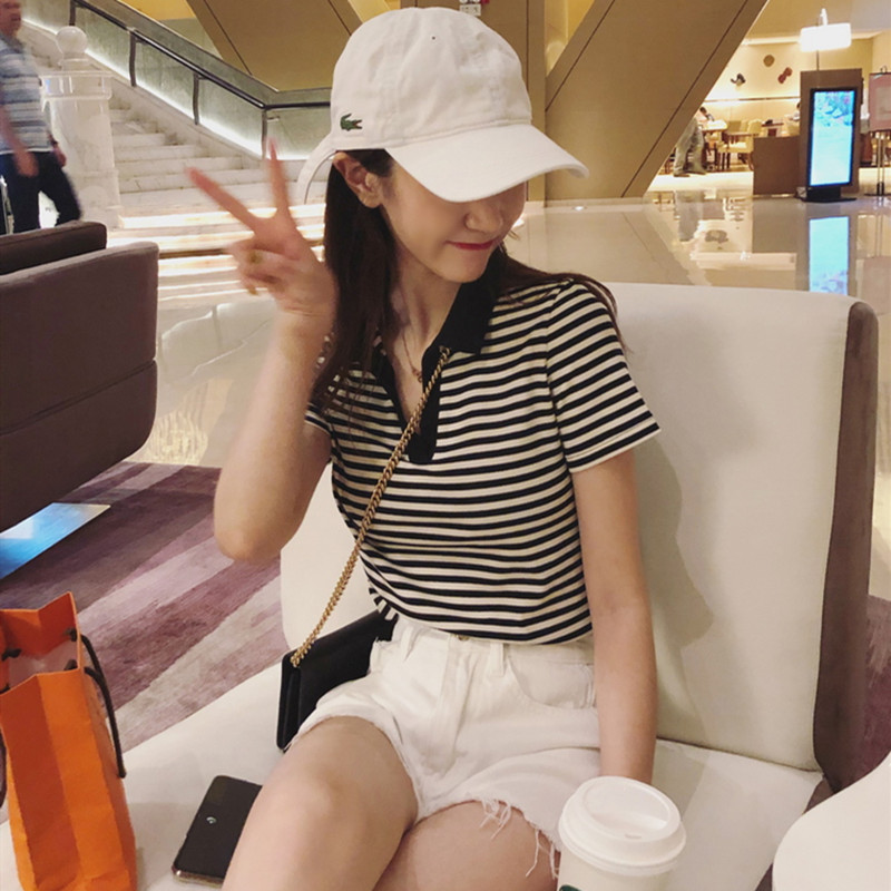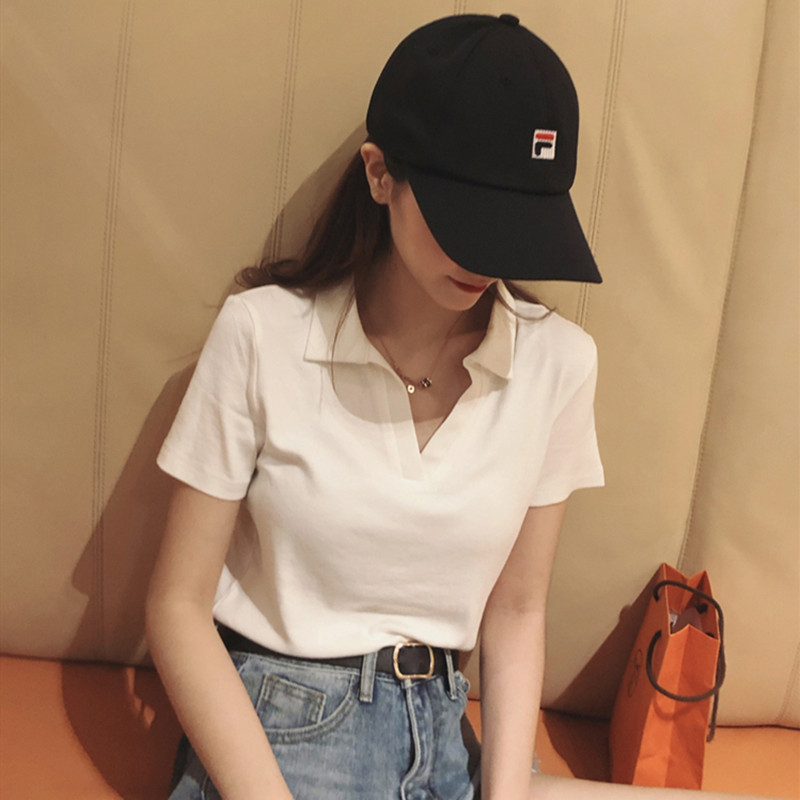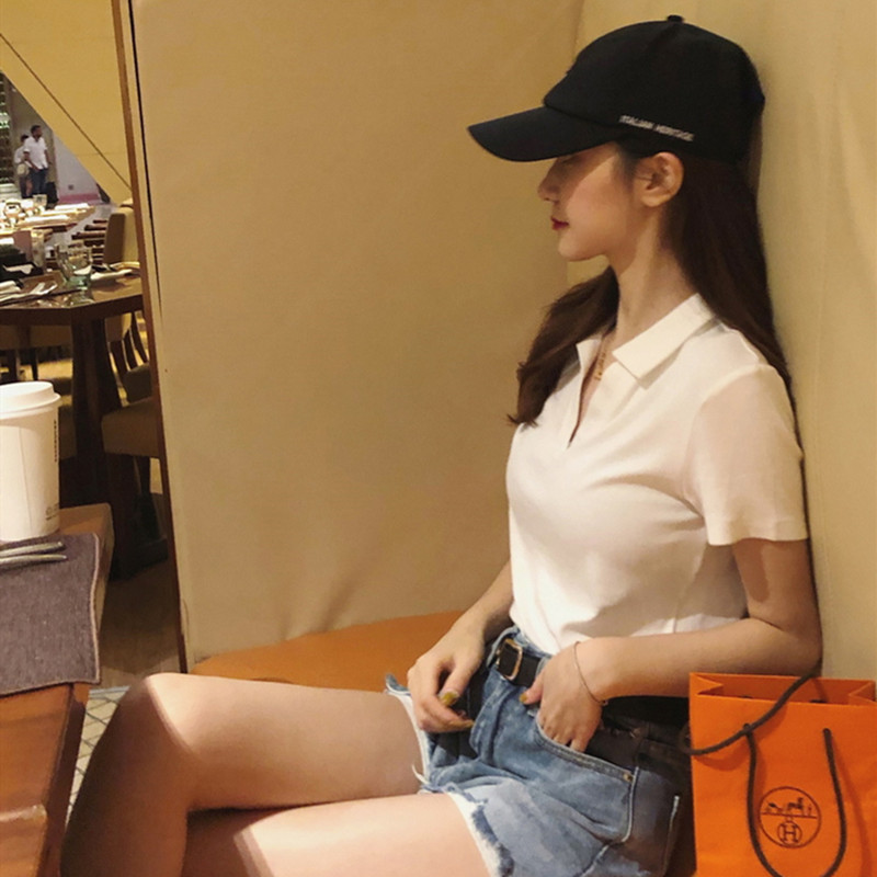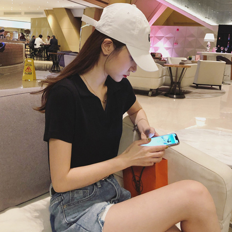夏季新款短袖t恤女ins潮韩版修身休闲运动翻领polo衫别致上衣