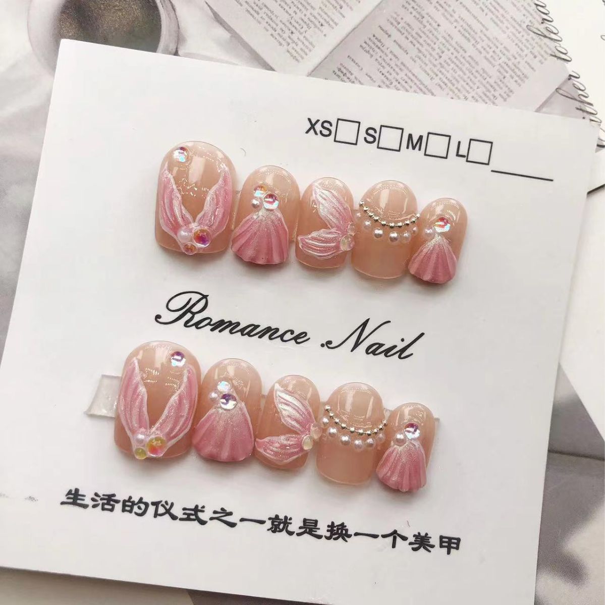纯手工穿戴甲泡泡美人鱼贝壳轻奢风仙女光疗美甲片可拆卸重复使用