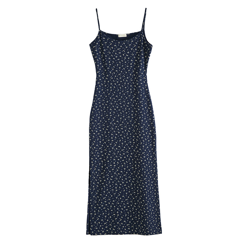 #260g精梳纯棉# 碎花U领吊带连衣裙女夏2025新款开衩性感显瘦长裙