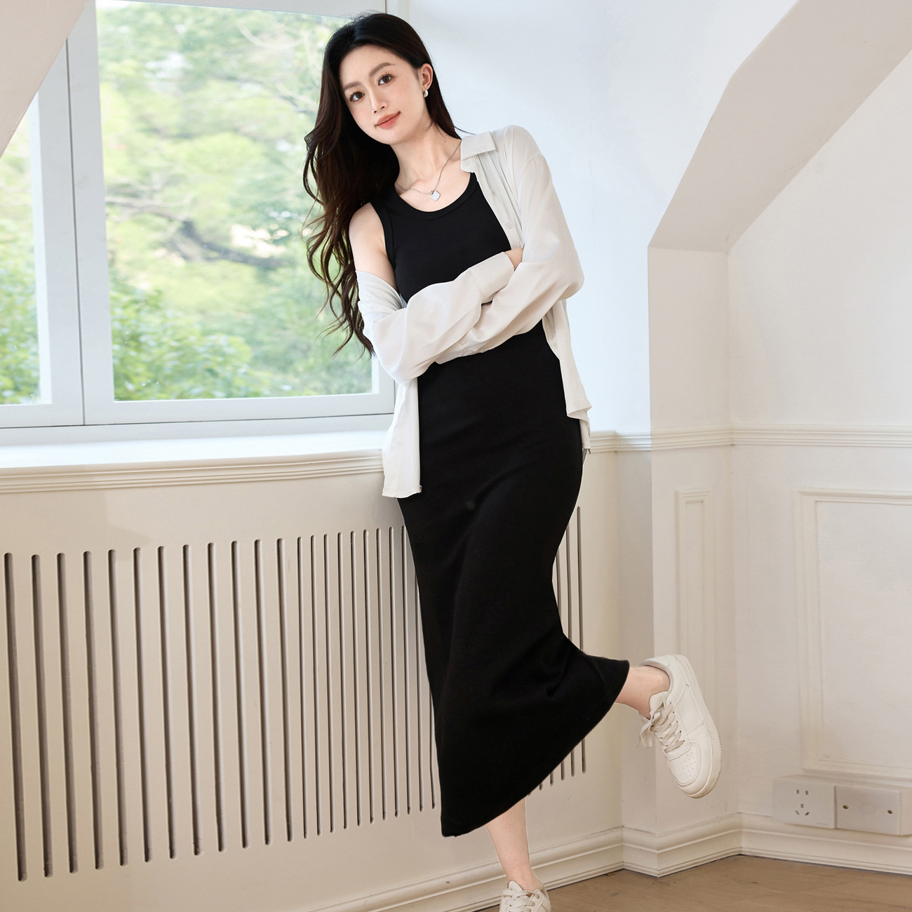 #甄选优棉#过膝背心连衣裙女夏纯棉2025新款修身显瘦内搭吊带长裙