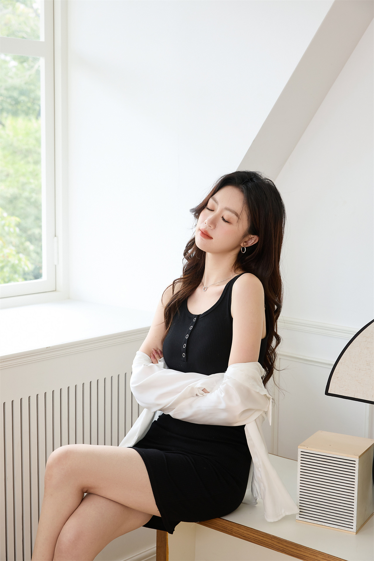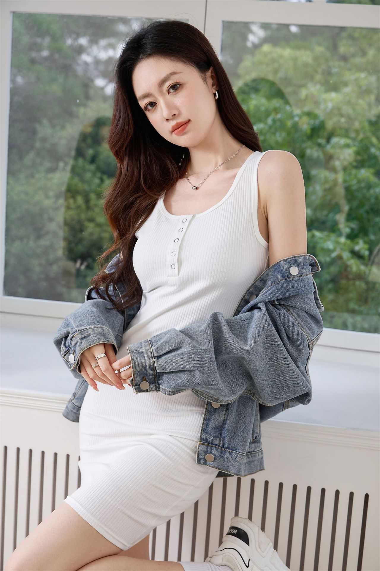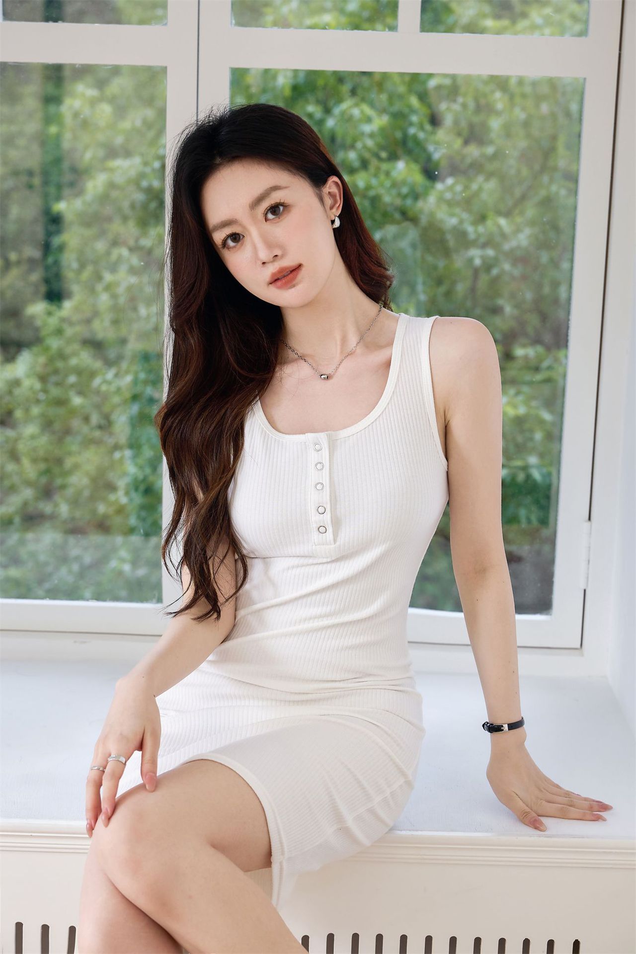 纽扣背心连衣裙女夏季2025新款纯棉紧身性感包臀吊带短裙子纯欲风