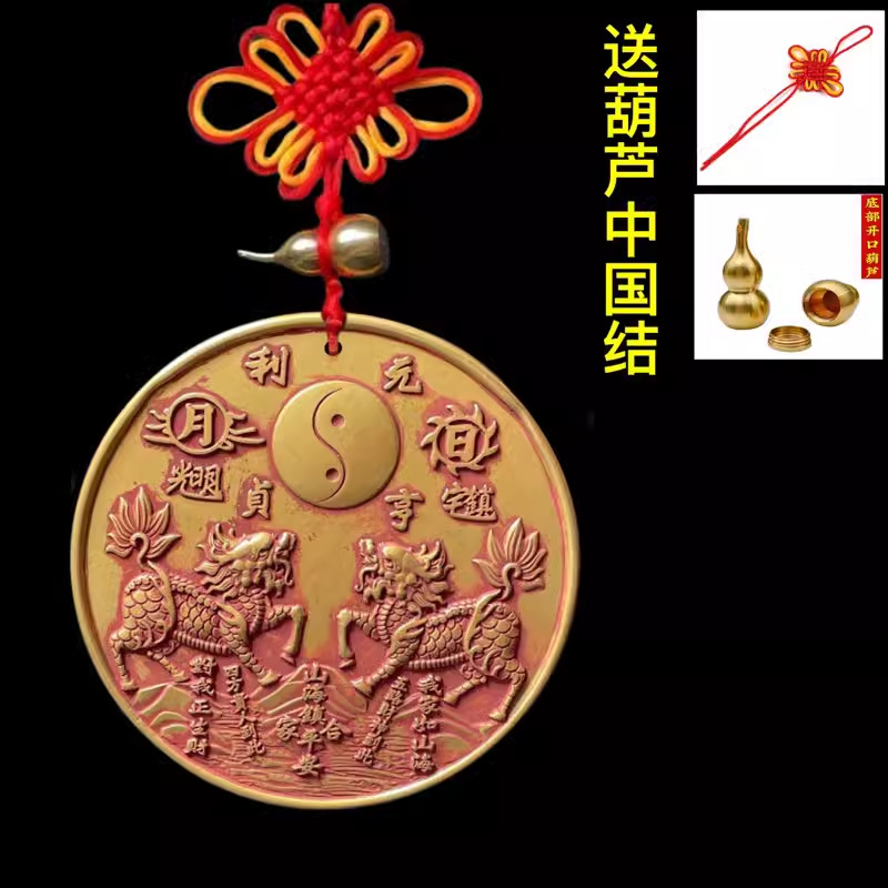 全铜麒麟山海镇挂件凹凸镜八卦镜大门口室内室外客厅工艺品摆件
