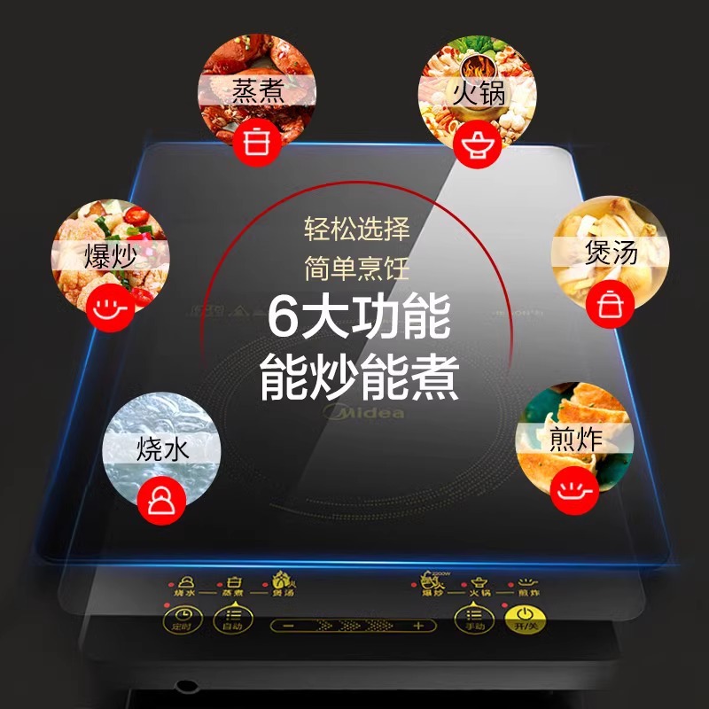 美.的电磁炉家用多功能炒菜火锅电池炉 大功率电磁炉智能防水耐磨