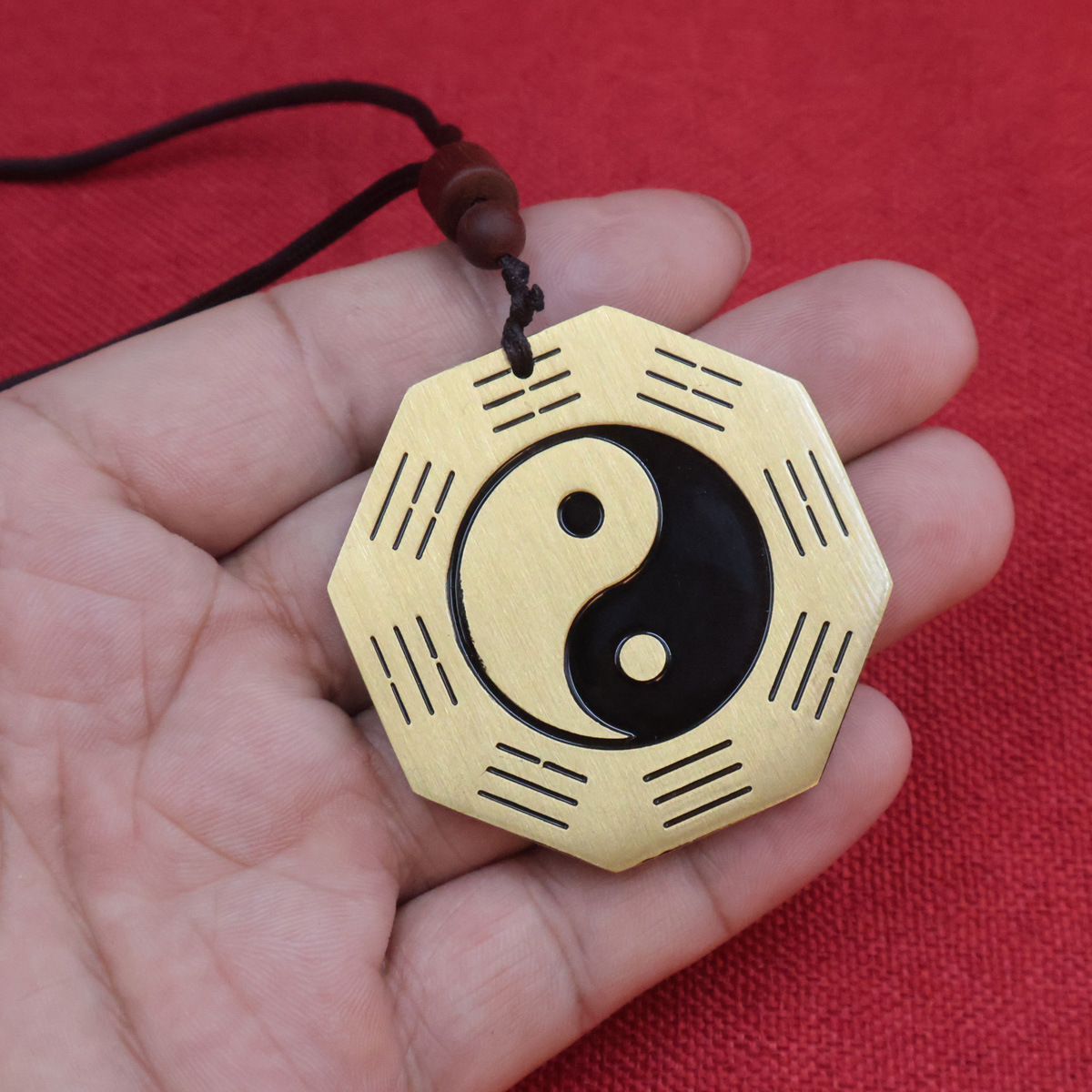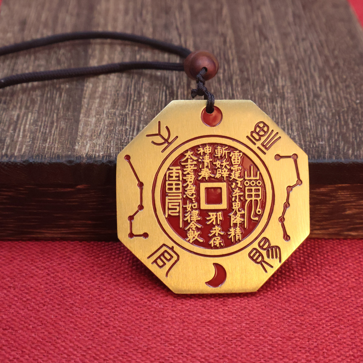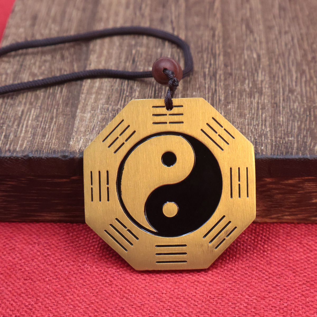 黄铜八卦镜山鬼钱挂件阴阳太极镜摆件黄铜镜子大门口窗户挂件