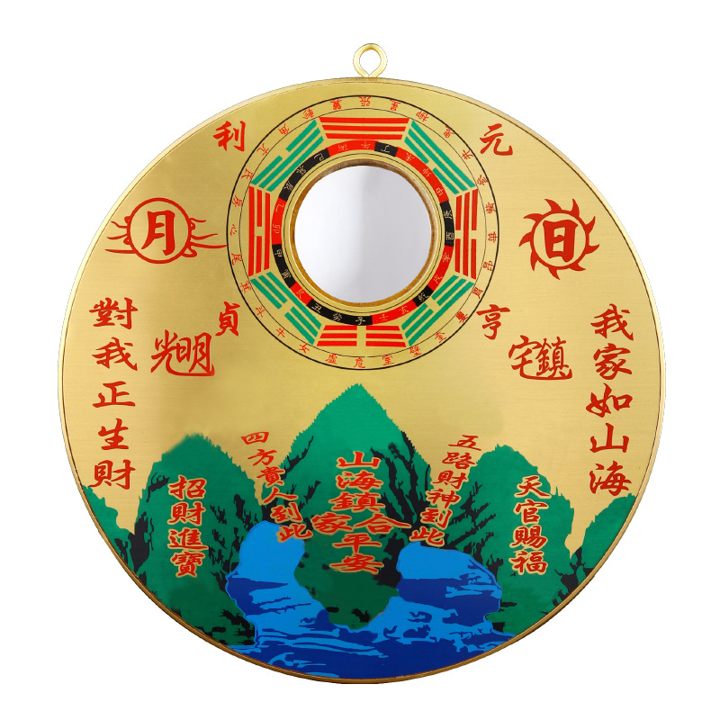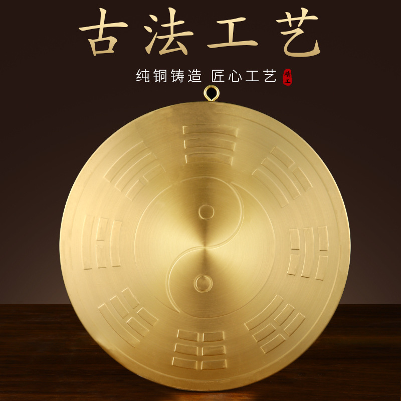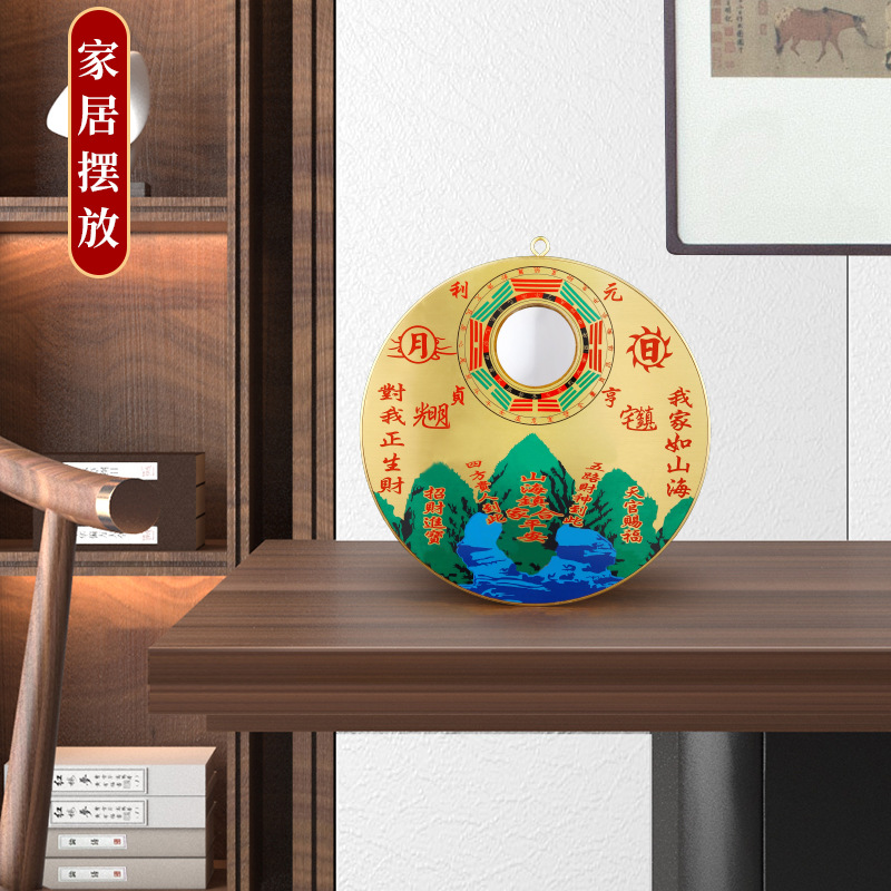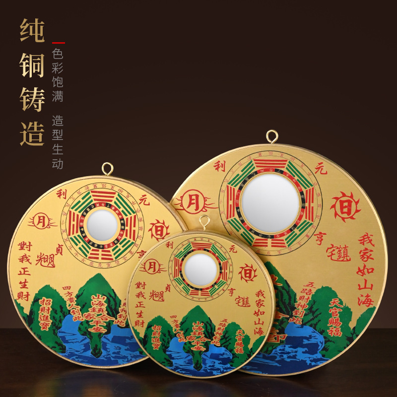 纯铜山海镇图铜牌凸面客厅摆件室内室外八卦镜挂件凸镜山河镇挂饰