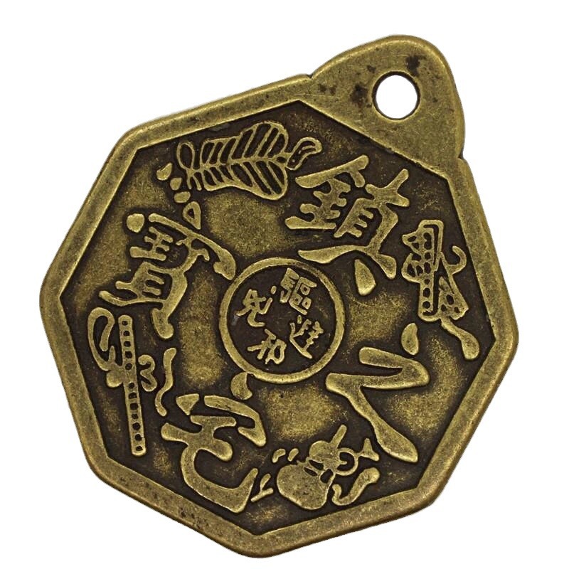 镇宅之宝太极八卦镜四大神兽黄铜材质铜钱五帝钱仿古工艺品