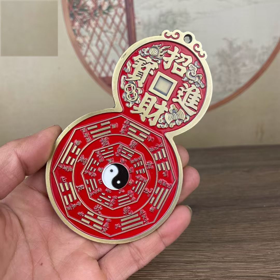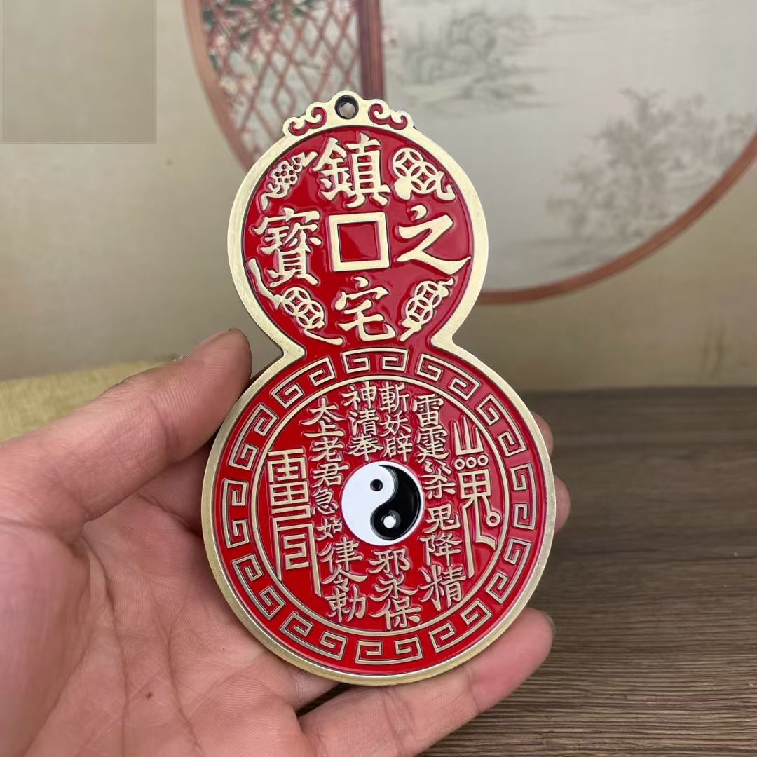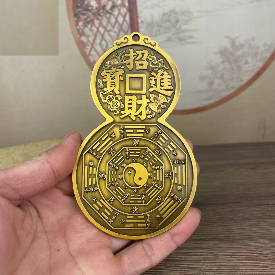 黄铜彩绘镇宅之宝合金八卦葫芦山鬼铜牌花钱铜钱吊坠挂件摆件家用
