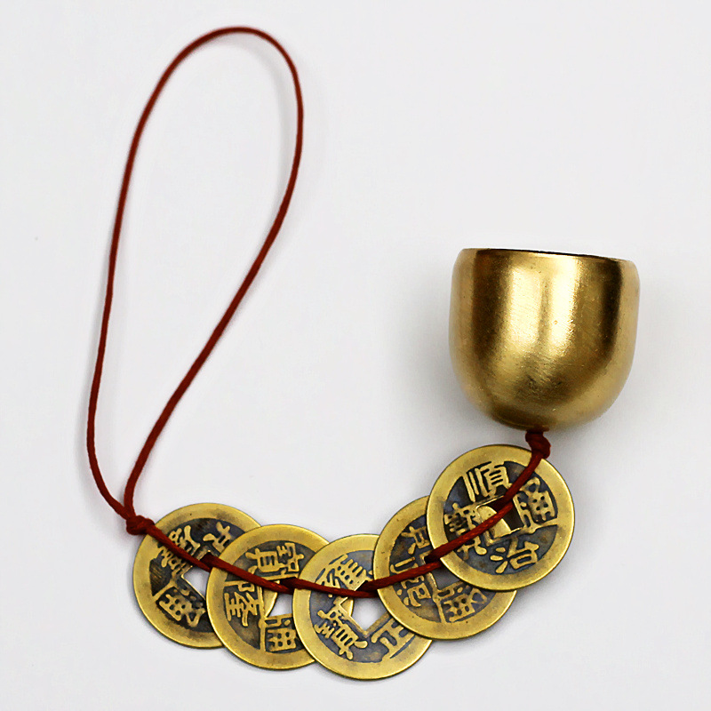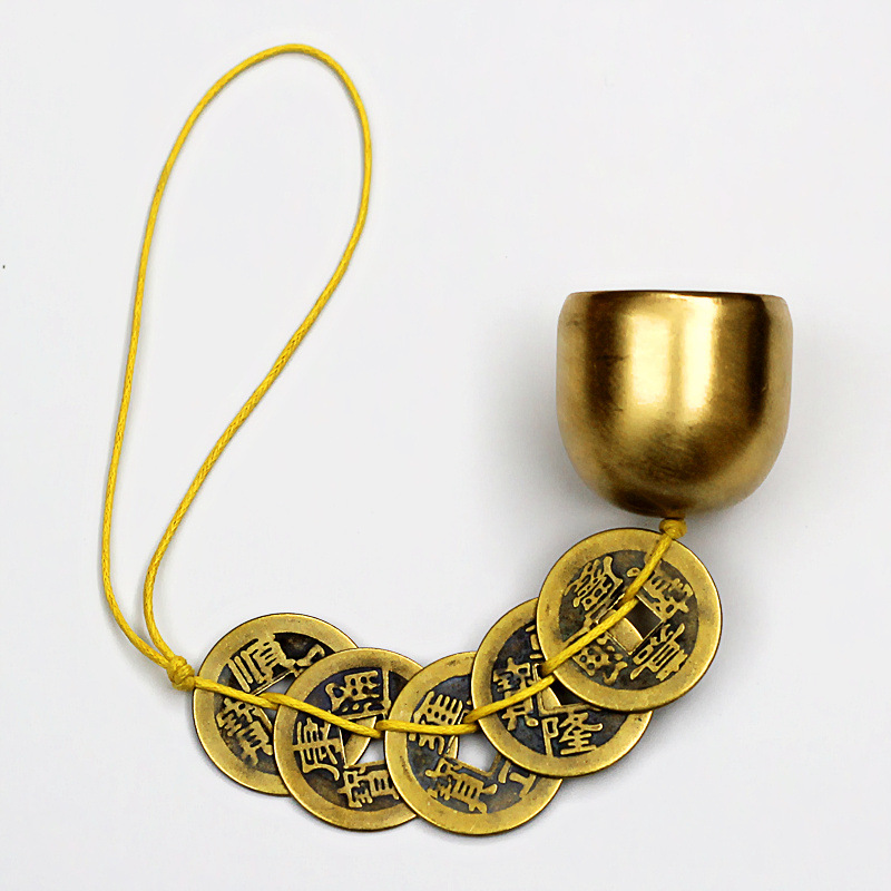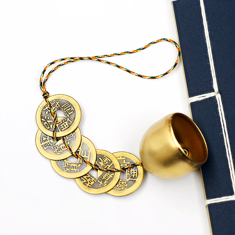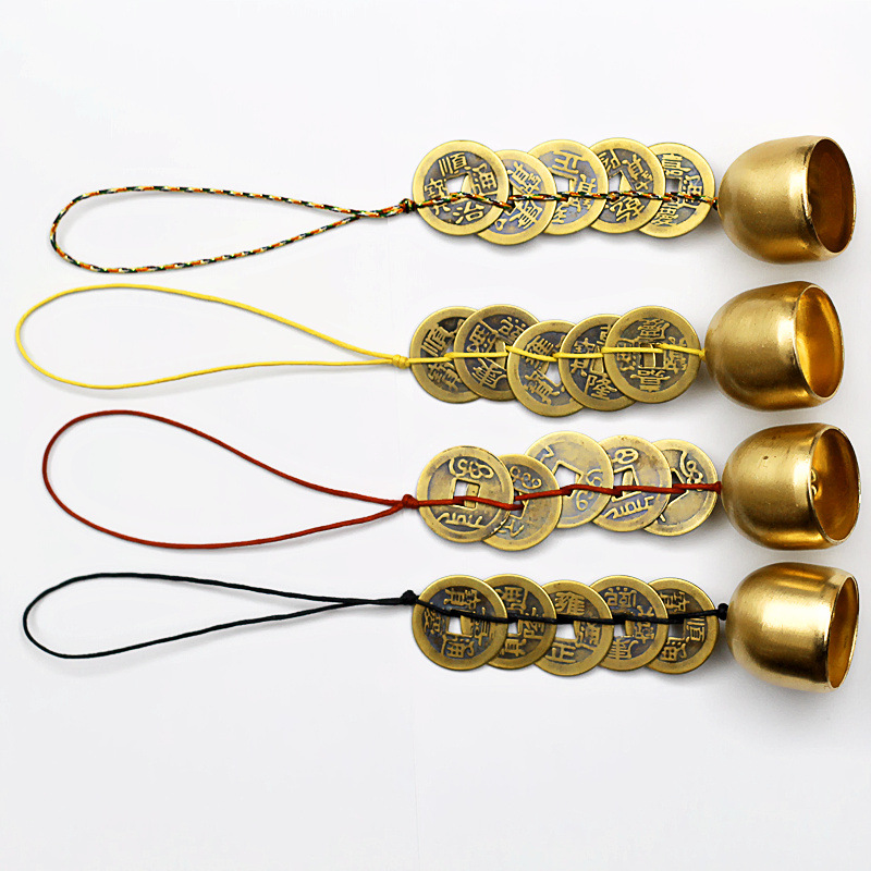 五色线金刚线古钱币五帝钱铜铃铛金属纯铜风水挂件汽车挂饰
