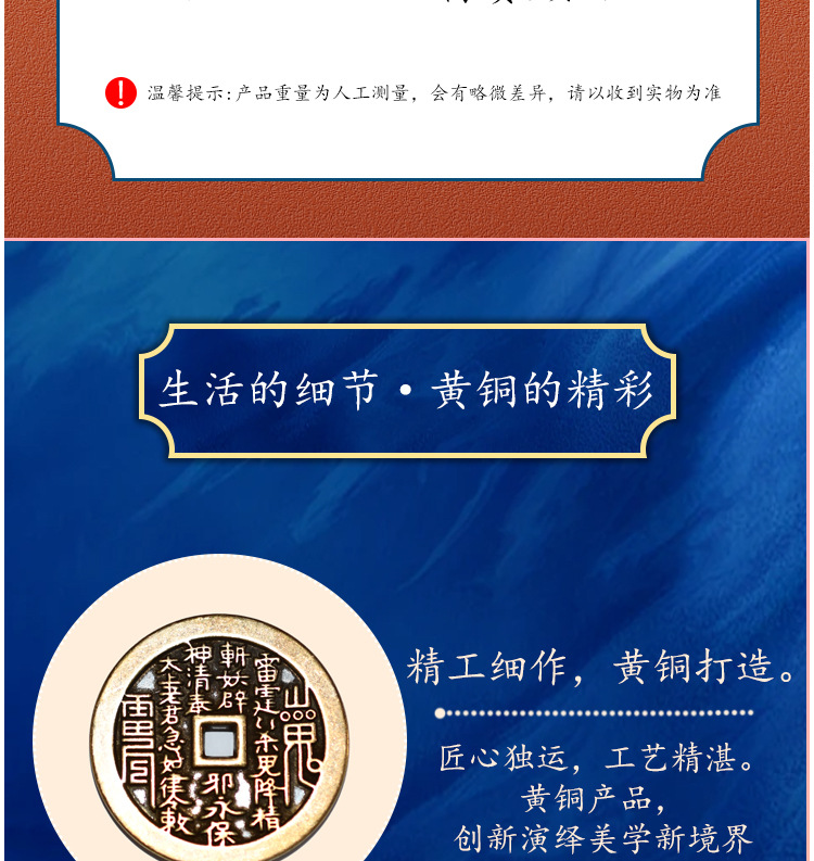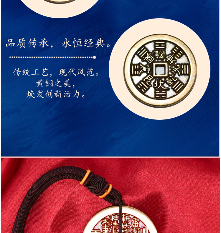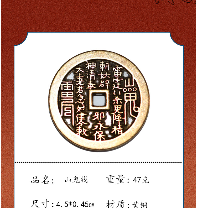 古风纯黄铜朱砂山鬼花钱吊坠乾坤八卦铜钱挂件道家铜钱饰品挂饰