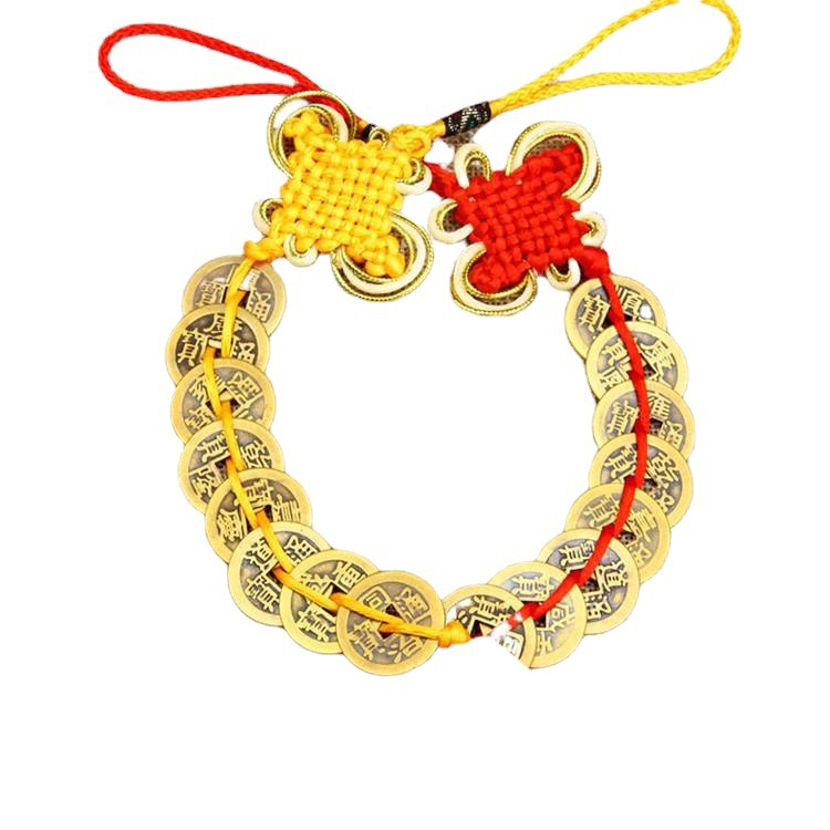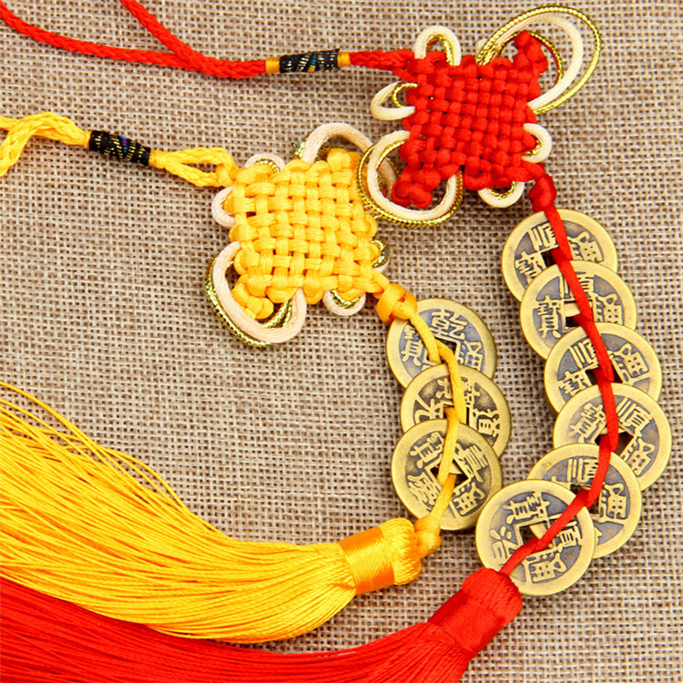 黄铜五帝钱红色中国结 十帝铜钱挂件 家居装饰礼品工艺品