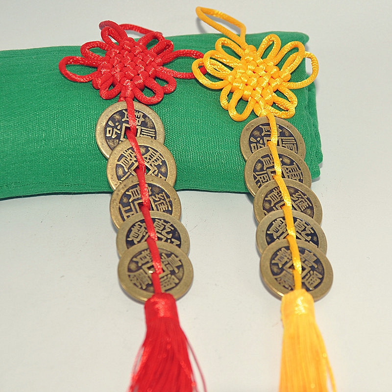 加厚真铜五帝钱红挂件
