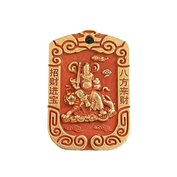 黄铜朱砂赵公明五路财神财神挂钱古玩铜牌异形花钱配饰铜牌吊坠