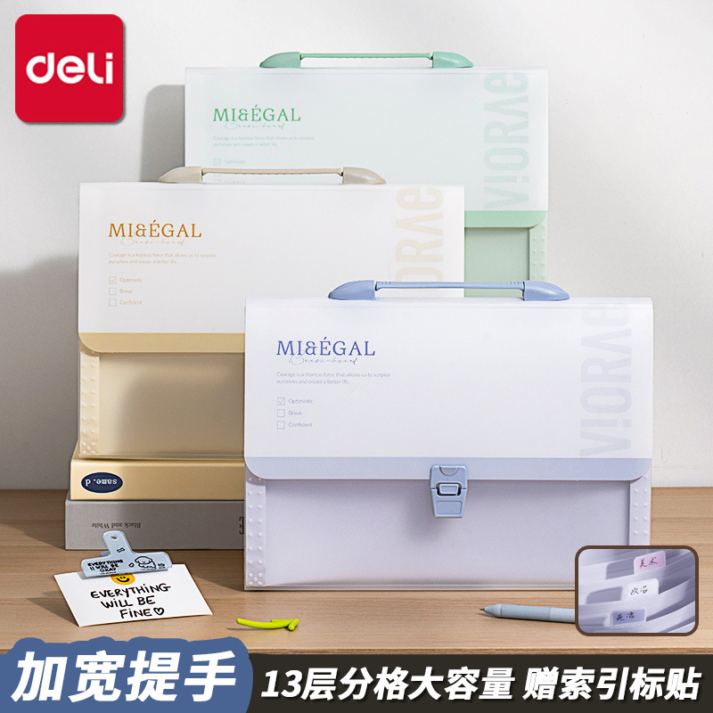 得力风琴包学生试卷收纳袋13格学科收纳分科带索引标贴风琴文件夹